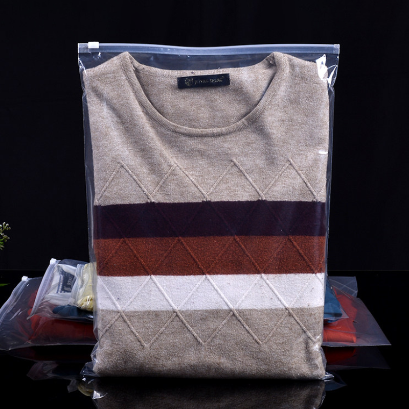 50pcs Double-Sided Transparent Clothing Zipper Bags PE Packaging Bags for T-Shirts, Jackets, Casual Pants, Customizable withLogo