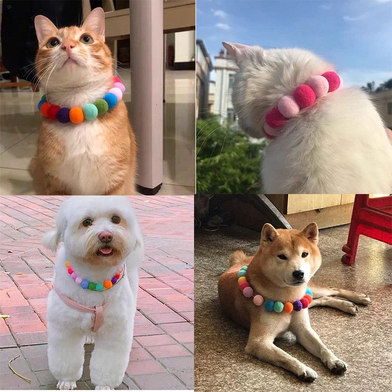 50pcs elastic pet Dog Bow Tie Rainbow Flower Hair Ball Necklace Collar Pet Dog Cat Bowties Neckties Dog Grooming Accessories
