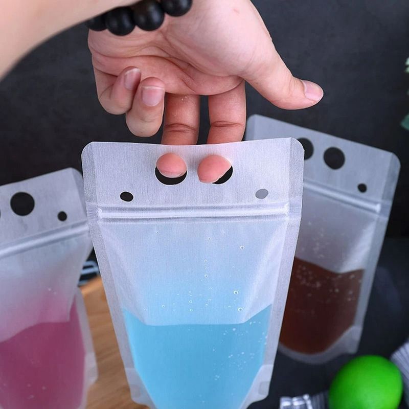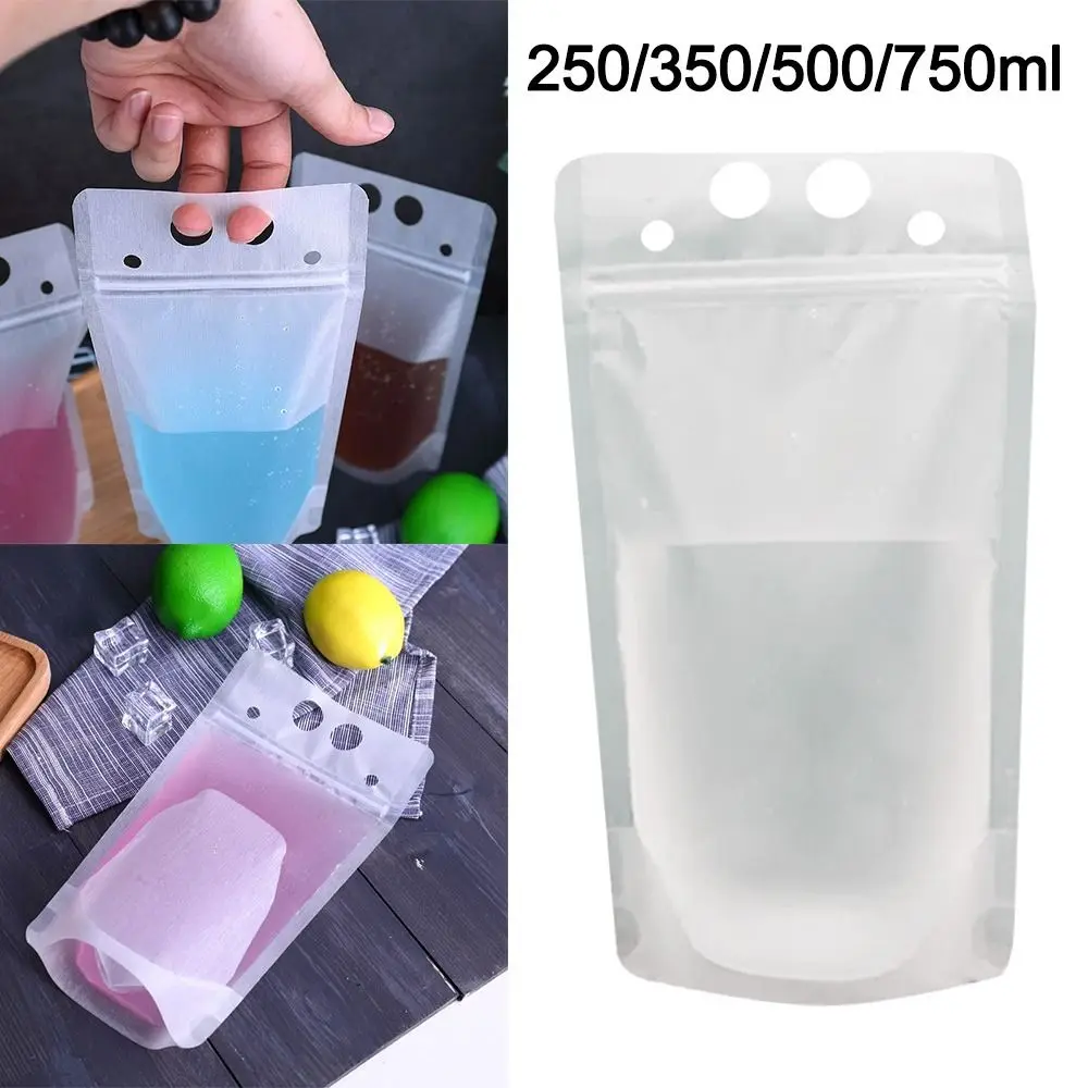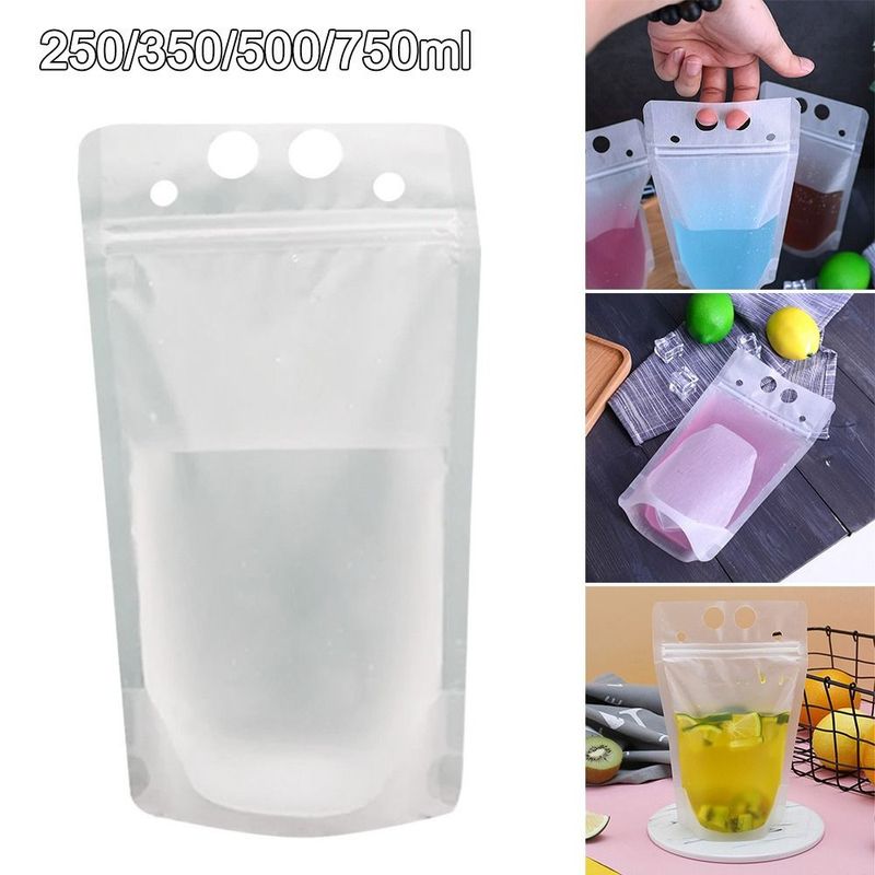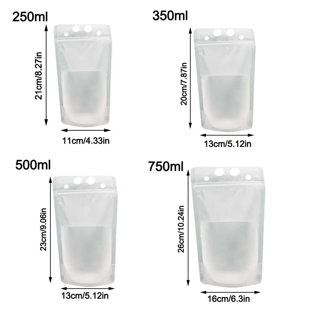 50Pcs Juice Coffee Drinks Seal Pouches Kitchen Vertical Liquid Standing Bag Frosted Disposable Reclosable for Party