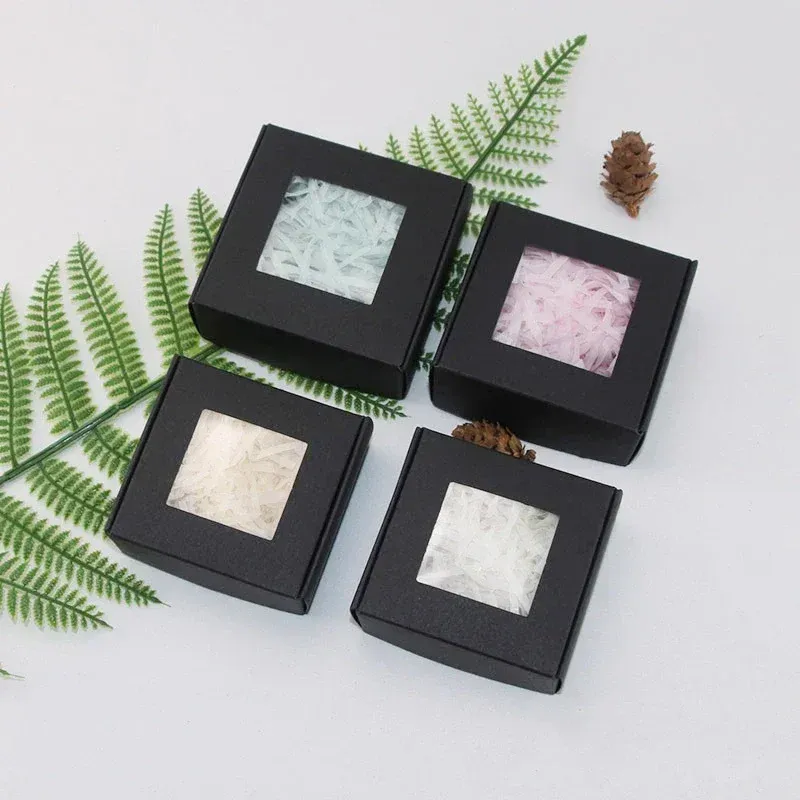 50Pcs Kraft Paper Candy Box Transparent PVC Window Soap Boxes Wedding Birthday Christmas Baby Shower Chocolate Gift Packaging Box