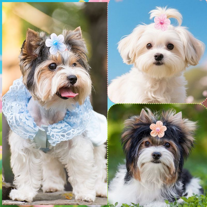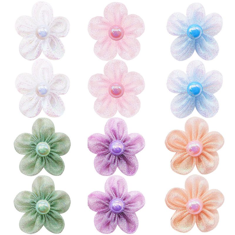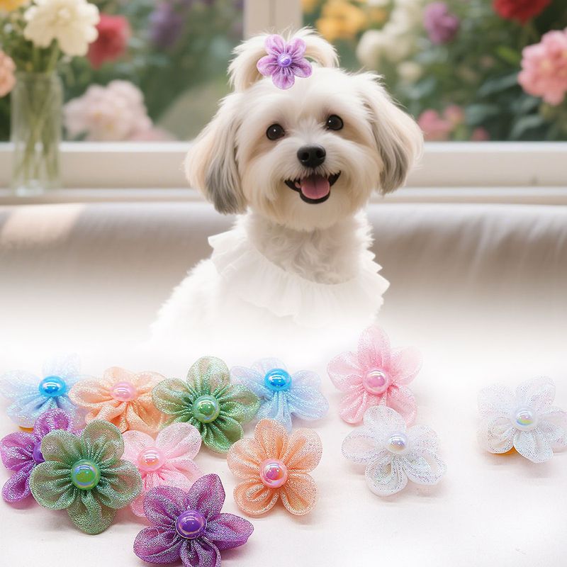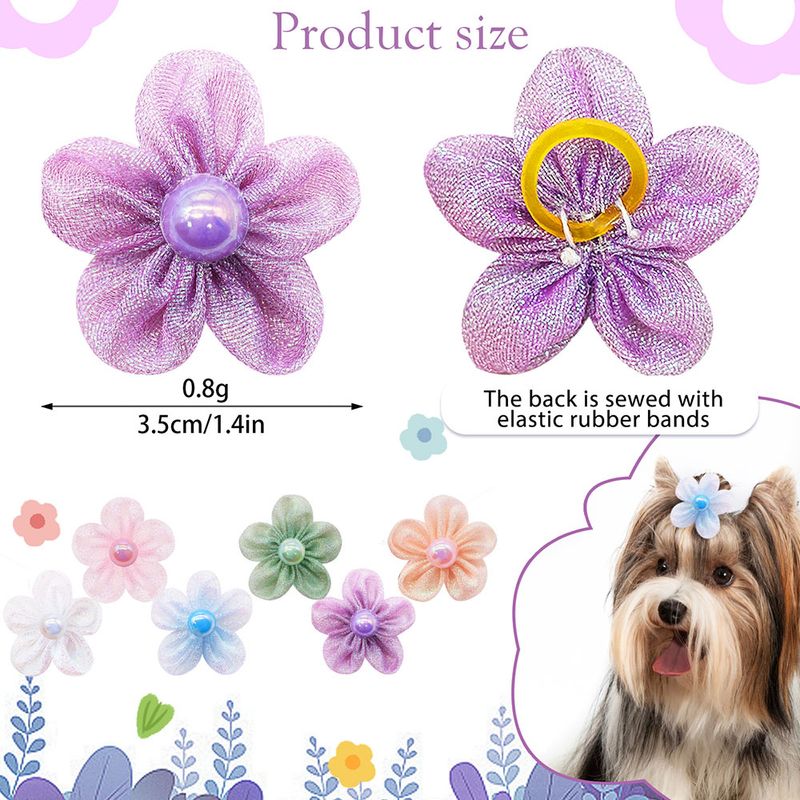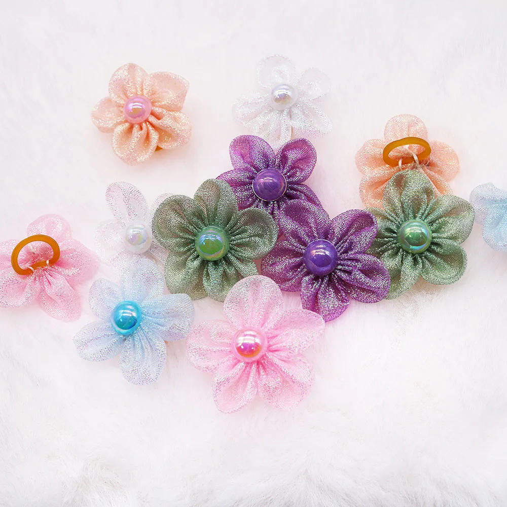 50pcs lace Flower Dog Hair Bows Pearl Rubber Bands Small Dog Puppy Grooming Bows For Dogs Pets Hair Accessories