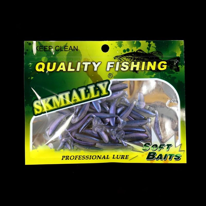 50pcs Mini Soft Fishing Lures, T-tail Worm Lure, Silicone Artificial Bait, Bass Pike Fishing Tackle