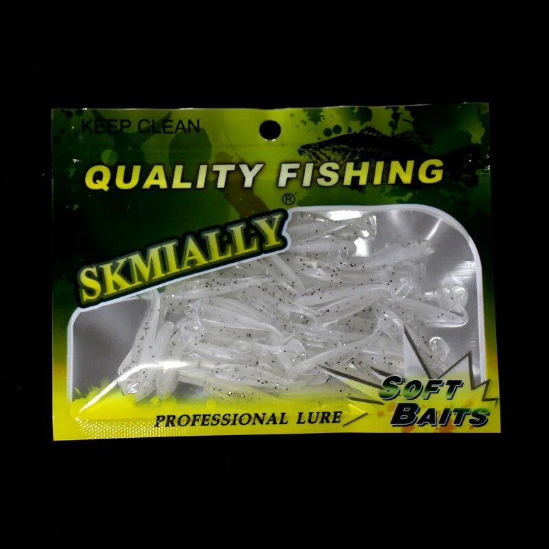 50pcs Mini Soft Fishing Lures, T-tail Worm Lure, Silicone Artificial Bait, Bass Pike Fishing Tackle