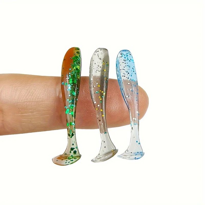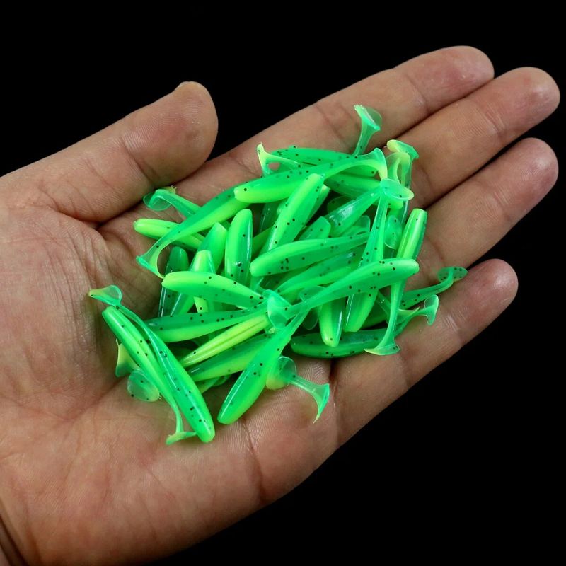 50pcs Mini Soft Fishing Lures, T-tail Worm Lure, Silicone Artificial Bait, Bass Pike Fishing Tackle