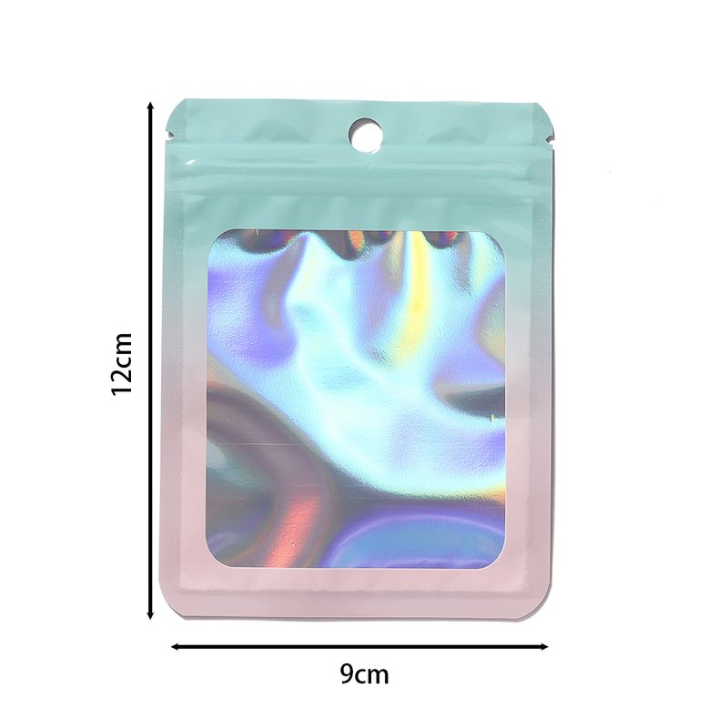 50pcs Thicken Ziplock Bags Gradient Holographic Laser AB Color Plastic Pouch for DIY Jewelry Storage Pouch Zip Lock Bag