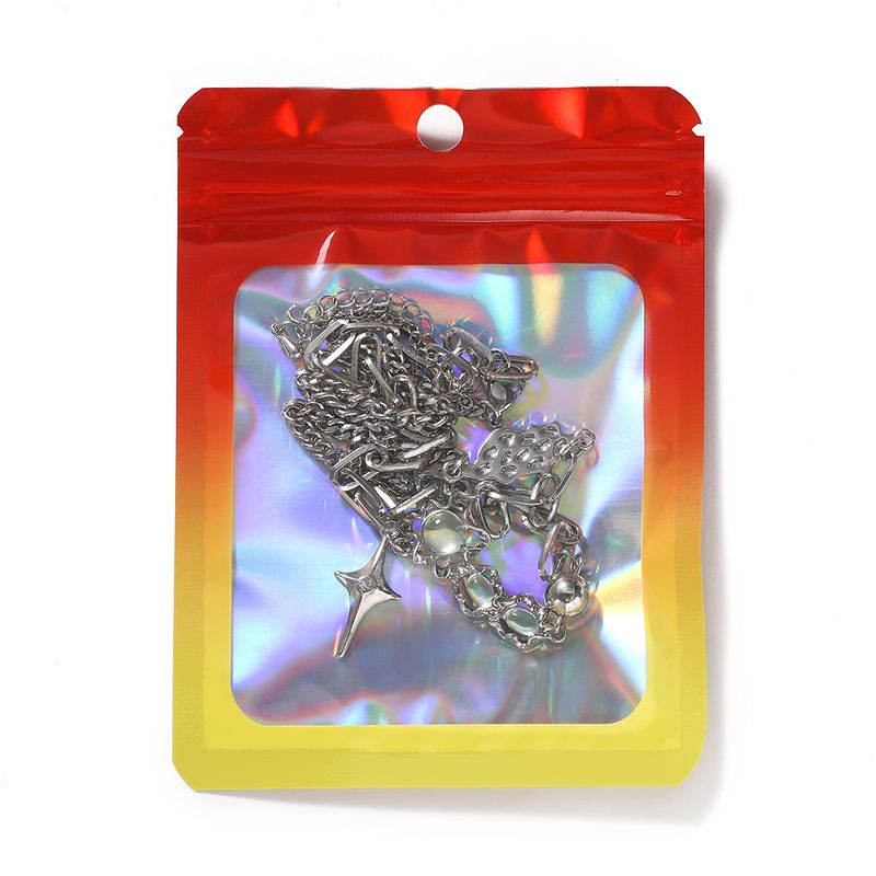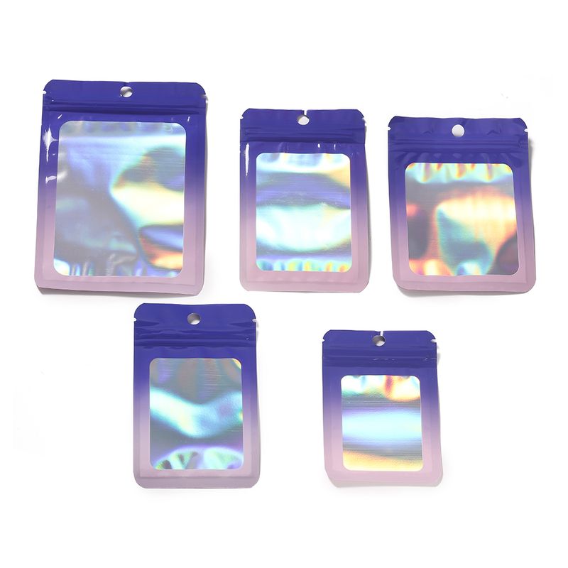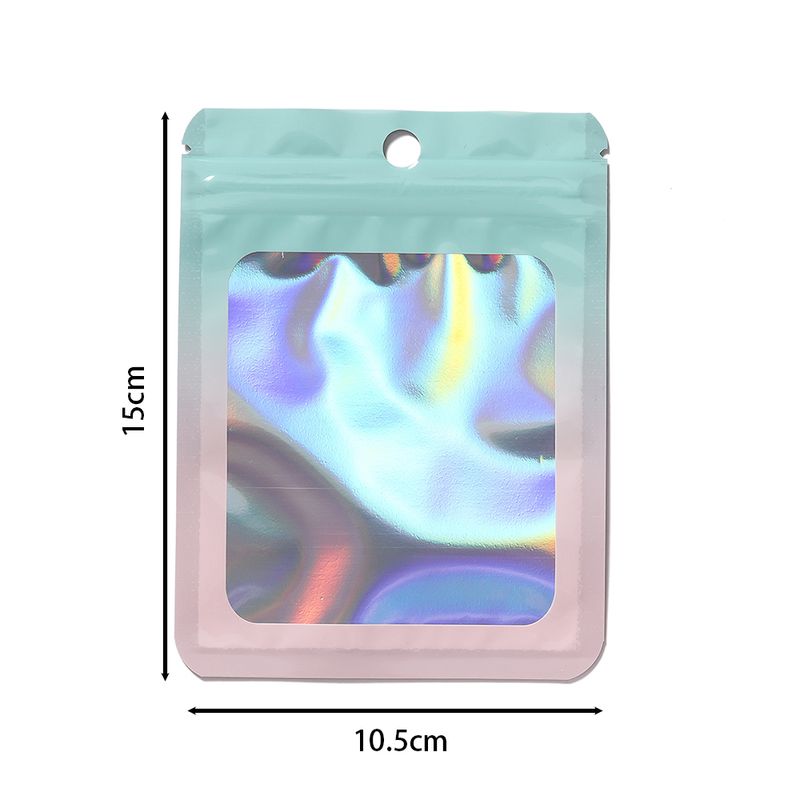 50pcs Thicken Ziplock Bags Gradient Holographic Laser AB Color Plastic Pouch for DIY Jewelry Storage Pouch Zip Lock Bag