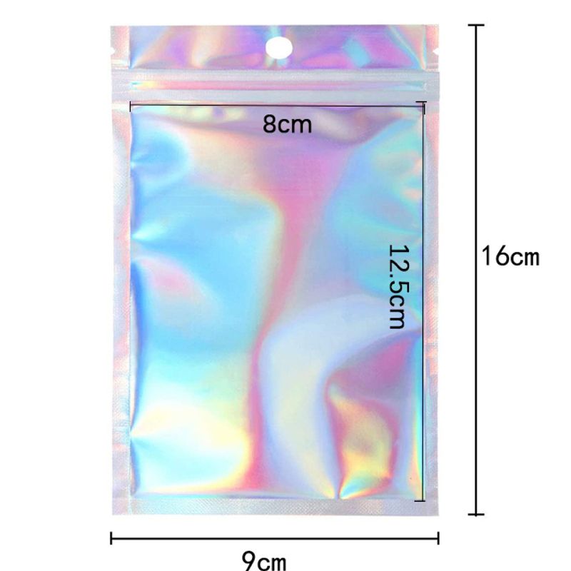 50pcs Thicken Ziplock Bags Resealable opp Bags Holographic Laser Color Plastic Pouch for Jewelry Display Packaging Storage Bag