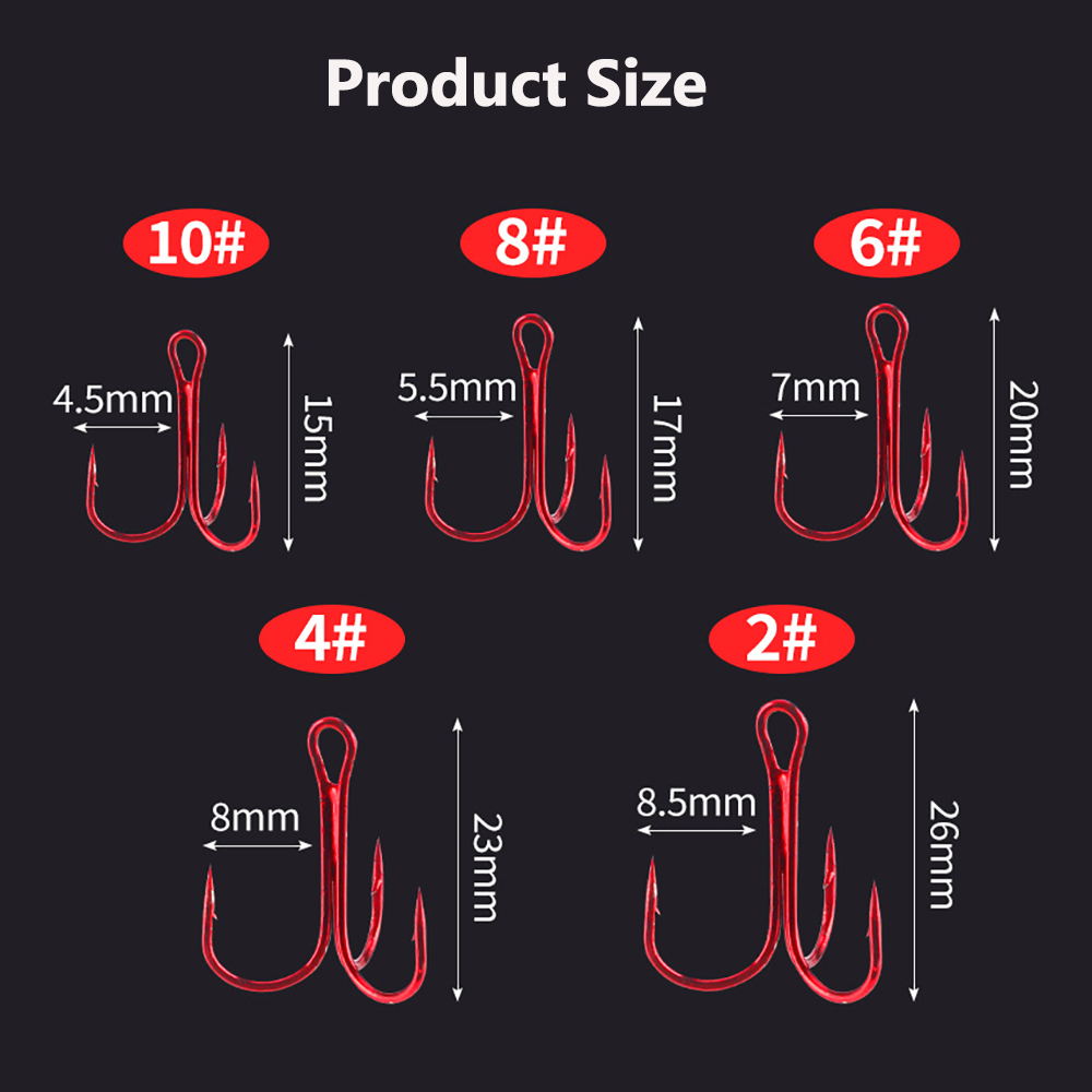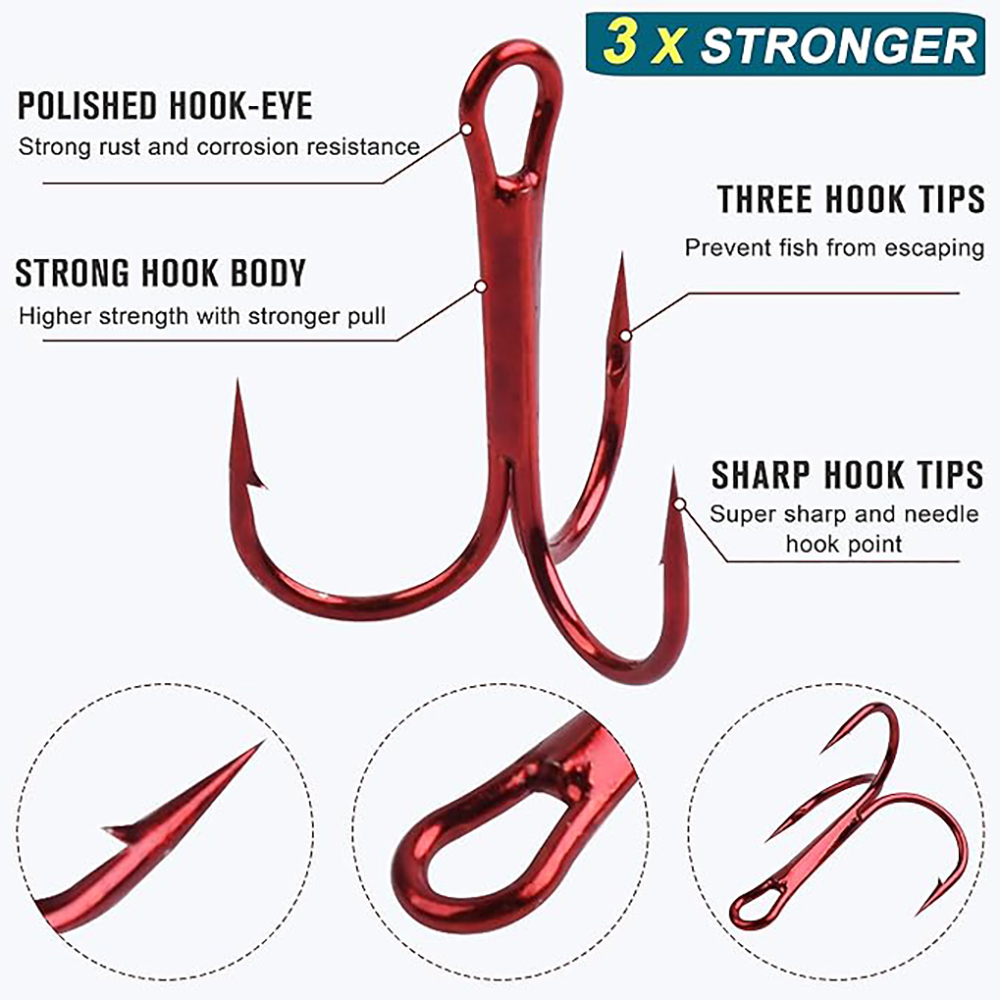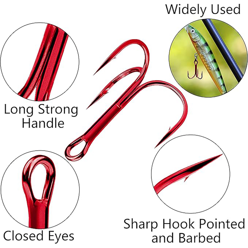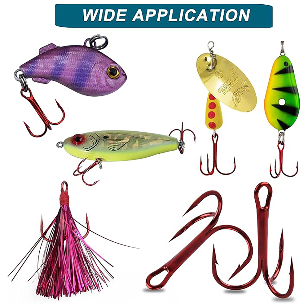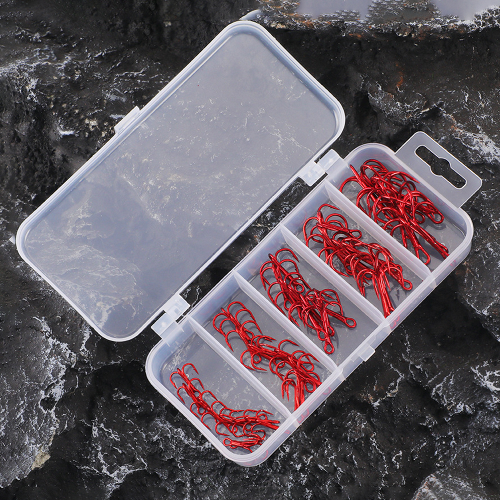50pcs/box Triple Fishing Hooks Set Carbon Steel Barbed Treble Fishhooks for Lures Sea Fishing Accessories Tackle Tools