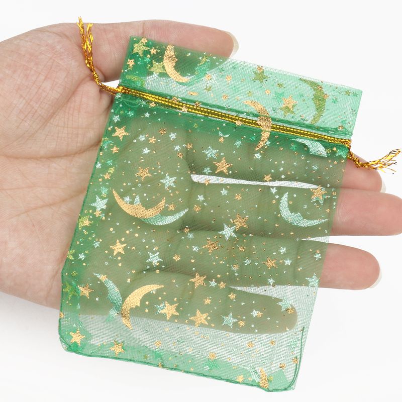 50pcs/Lot 7x9 9x12 11x16 13x18cm Printing Star Moon Christmas Organza Sack Drawstring Charm Packaging Bags Daily Jewelry
