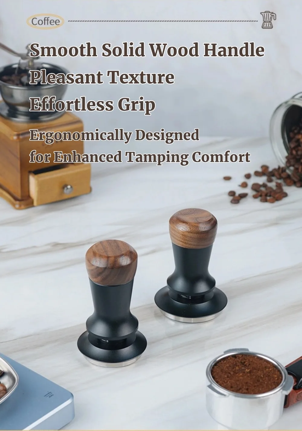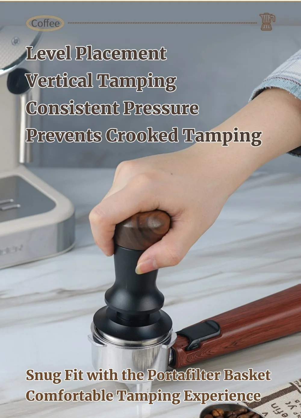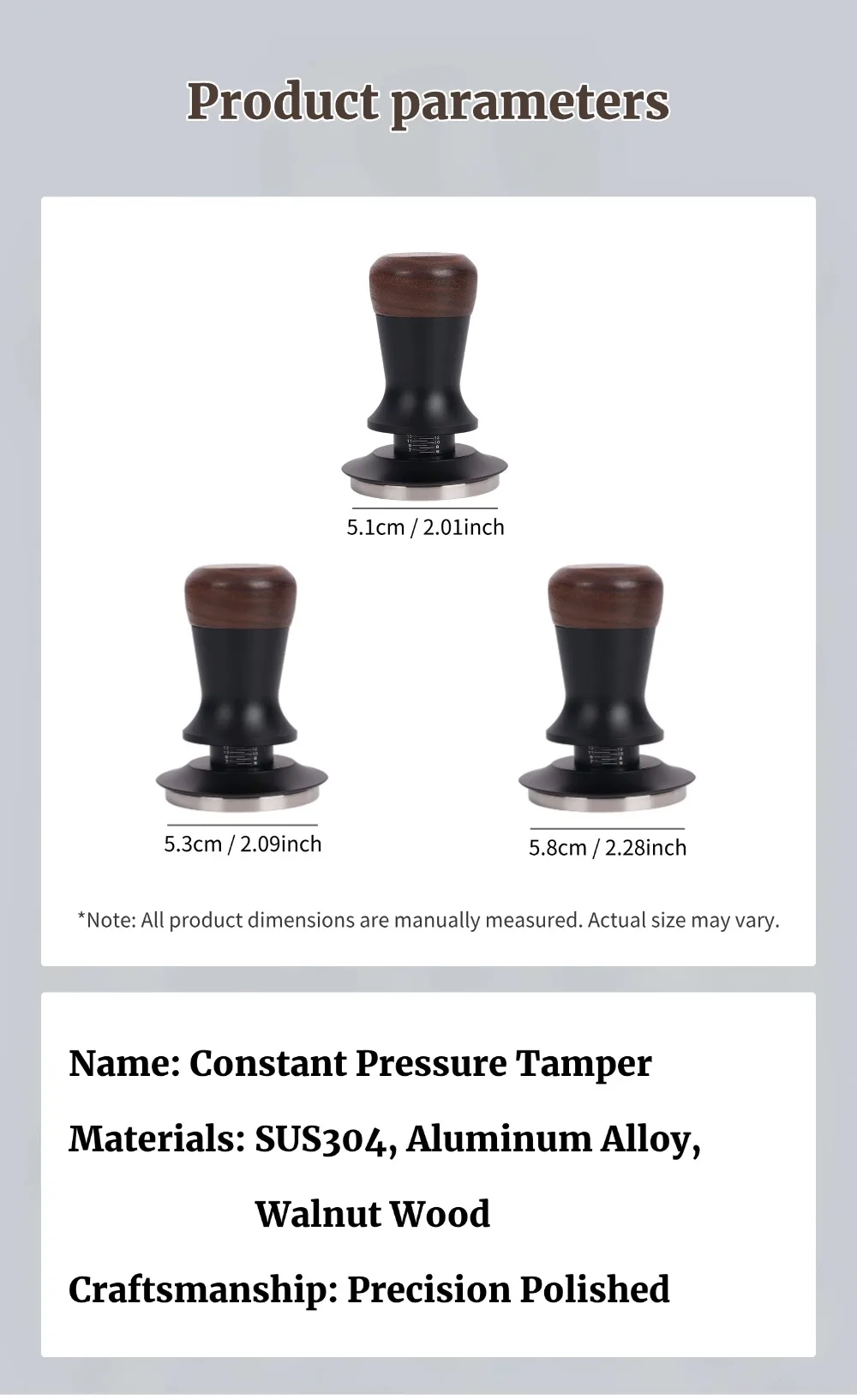 51/53/58mm Walnut Wood Coffee Tamper - Manual Espresso Tamper with Constant Pressure, Professional Barista Tool for Home Cafe, C