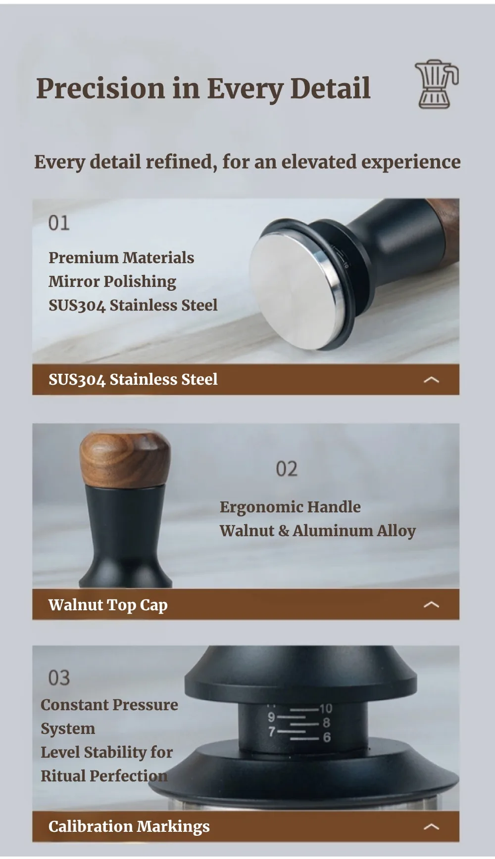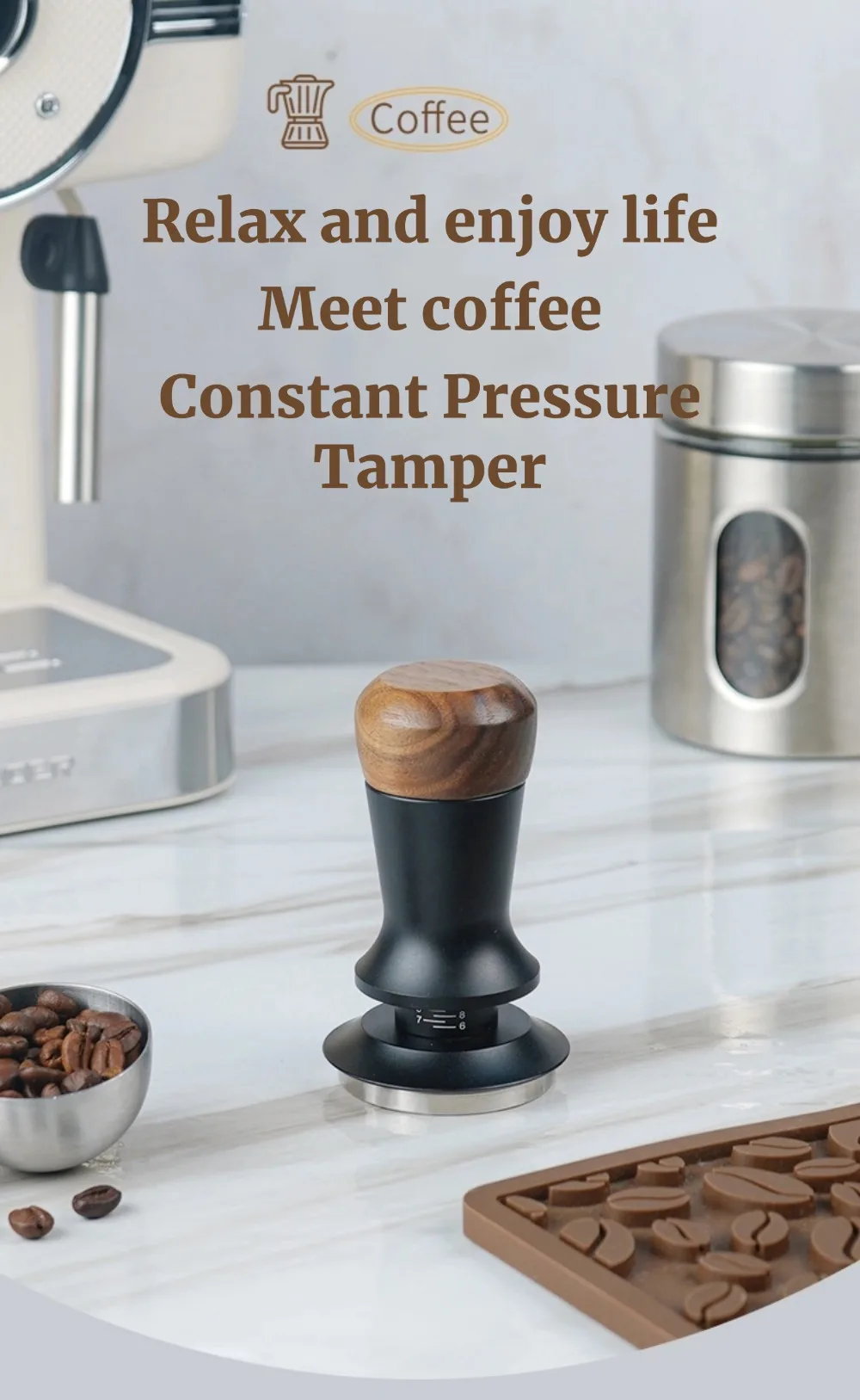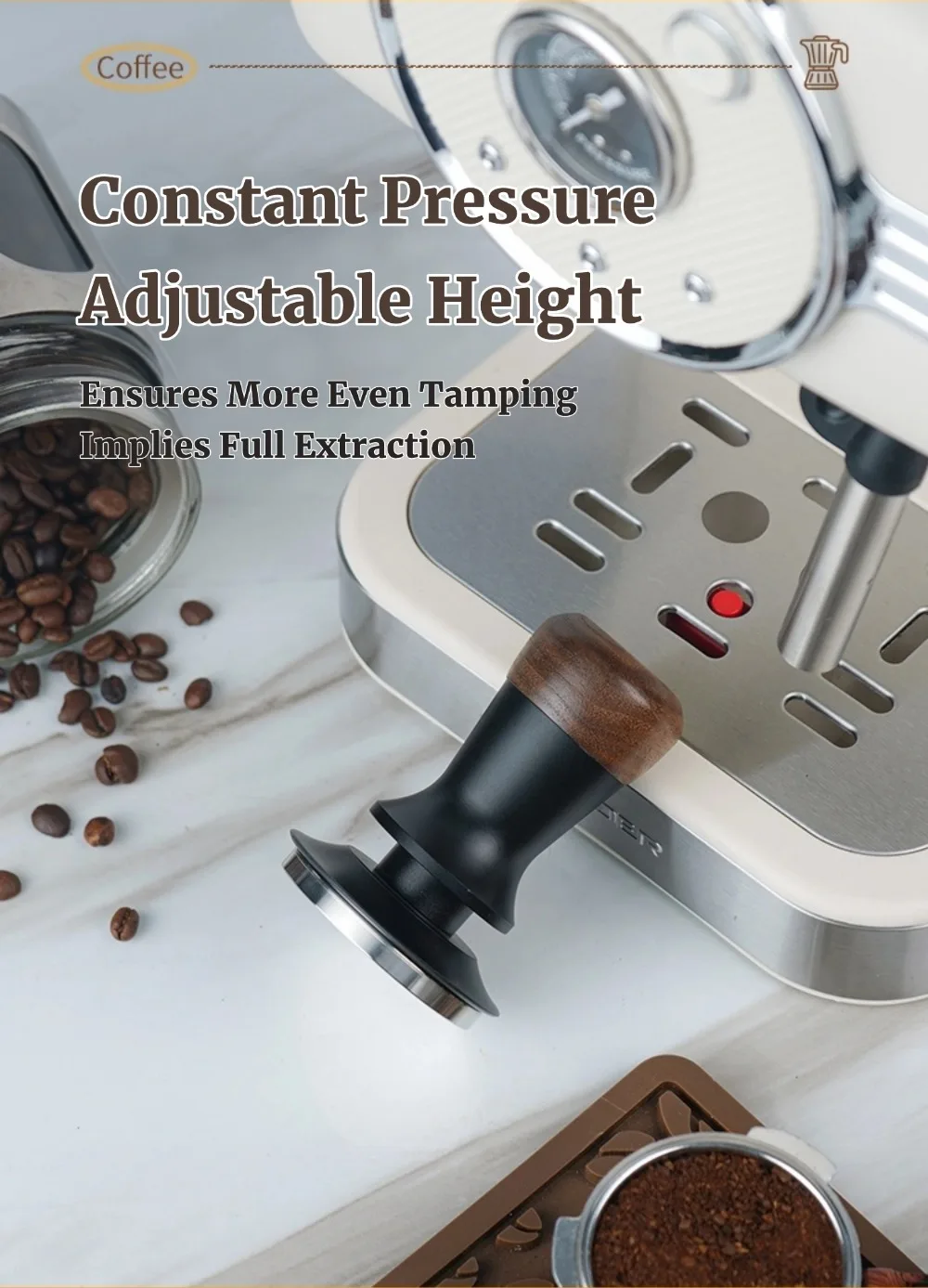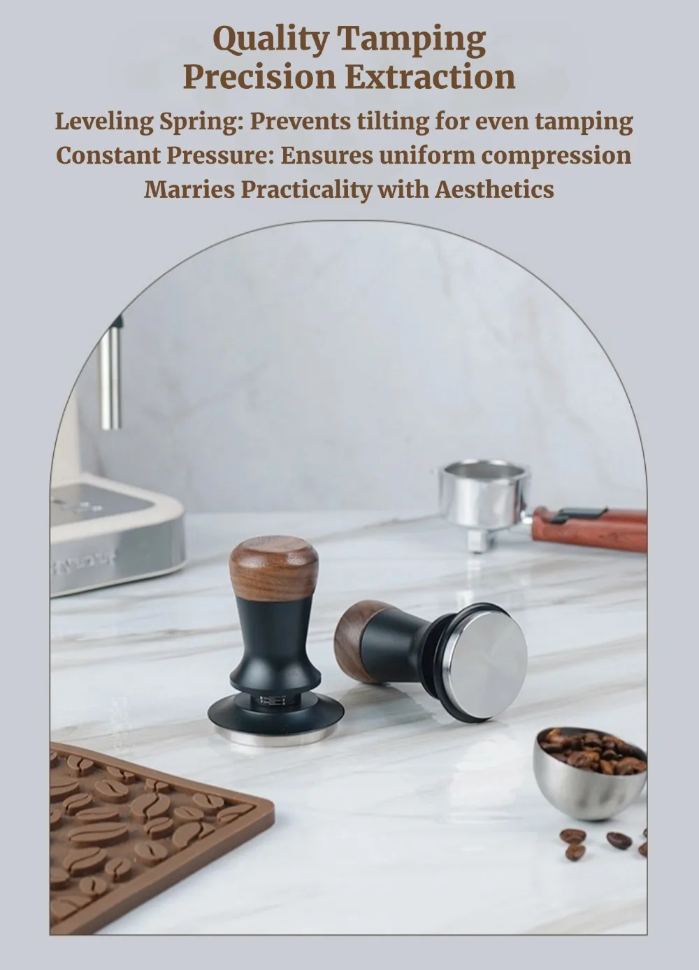 51/53/58mm Walnut Wood Coffee Tamper - Manual Espresso Tamper with Constant Pressure, Professional Barista Tool for Home Cafe, C