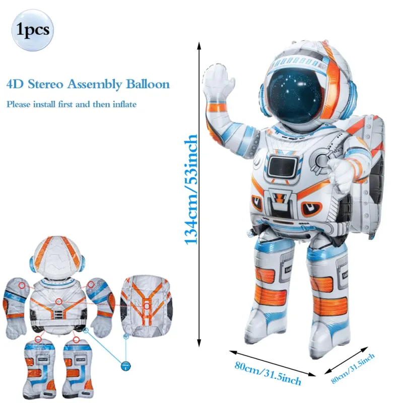 53inch 4D Standing Inflatable Astronaut Spaceman Foil Balloon for Boys Outer Space Galaxy Planet Theme Birthday Party Decoration