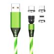 540 Rotate Luminous Magnetic Cable 3A Fast Charging Mobile Phone Charge Cable For LED Micro USB Type C For I Phone Cable Green Android 1M