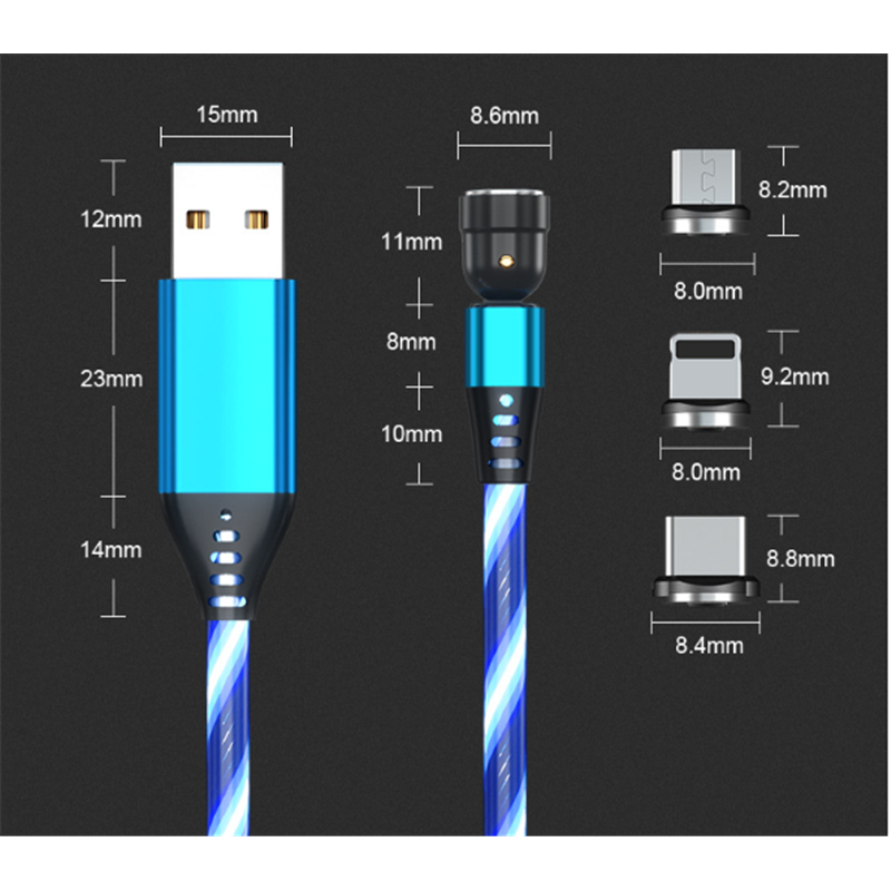 540 Rotate Luminous Magnetic Cable 3A Fast Charging Mobile Phone Charge Cable For LED Micro USB Type C For I Phone Cable Red Type c 2M