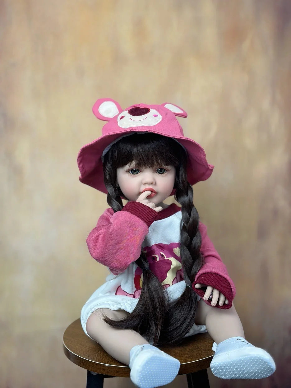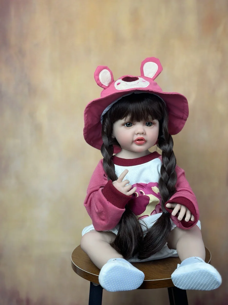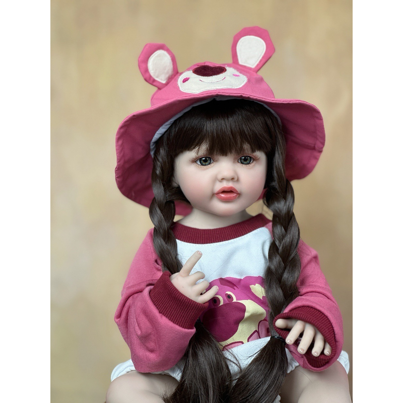 55 cm Lifelike Full Body Silicone Vinyl Girl Washable Reborn Baby Doll With Long Hair Bebe Reborn Children Toys Christmas Gift