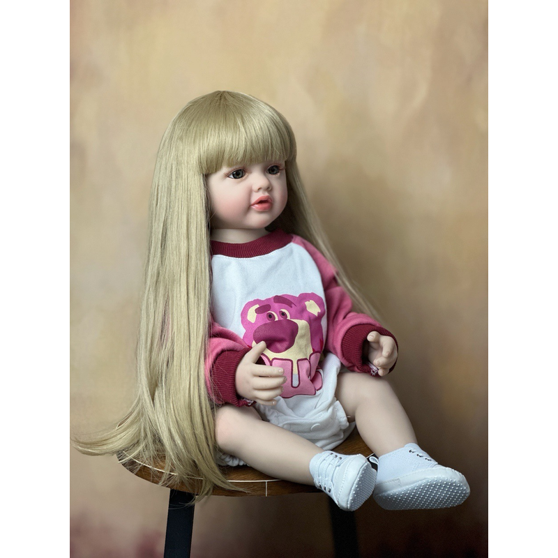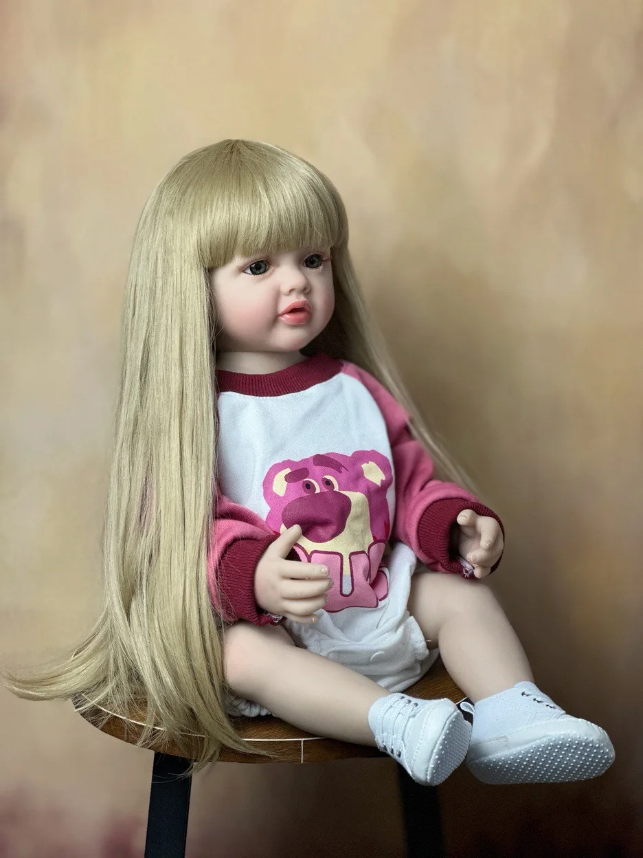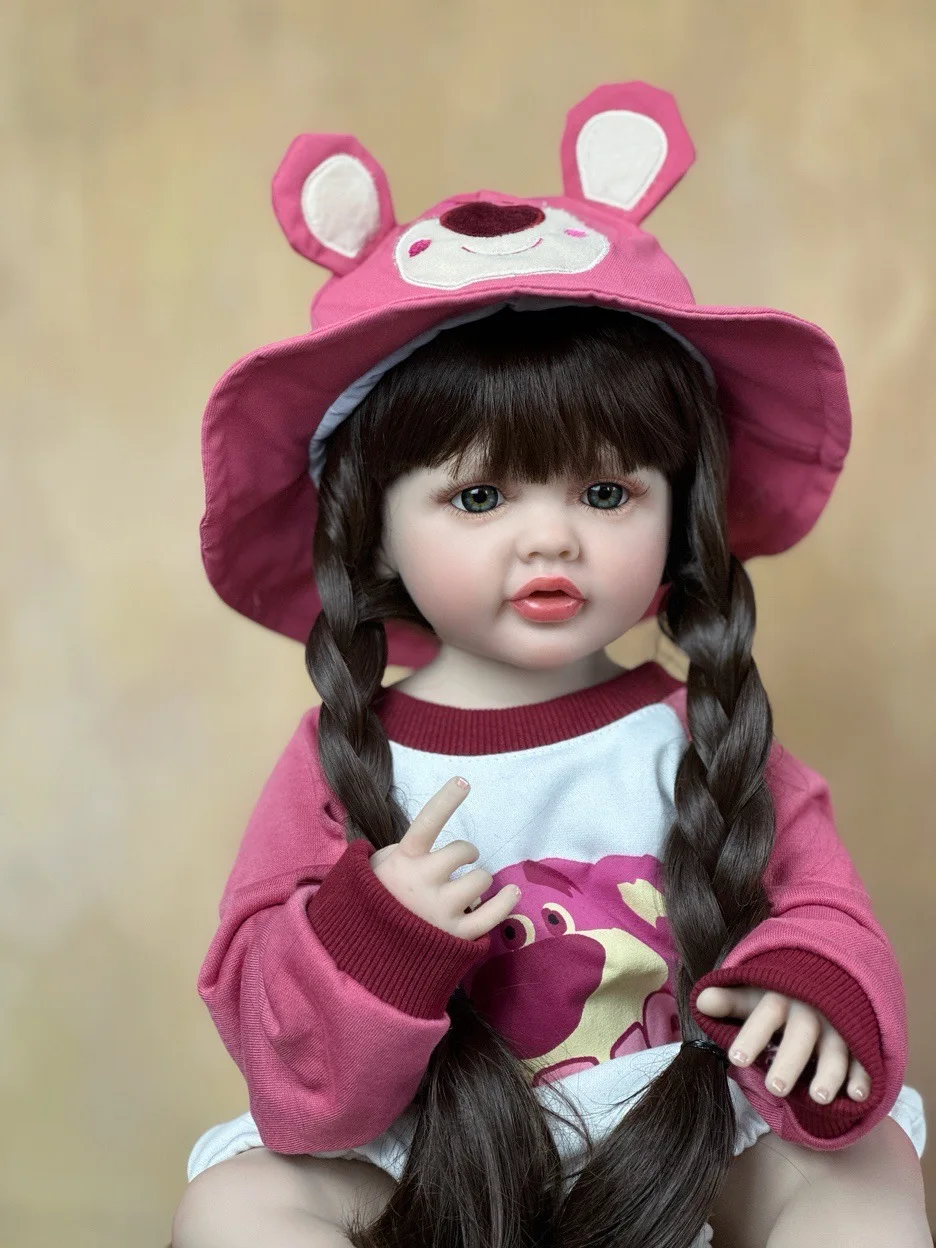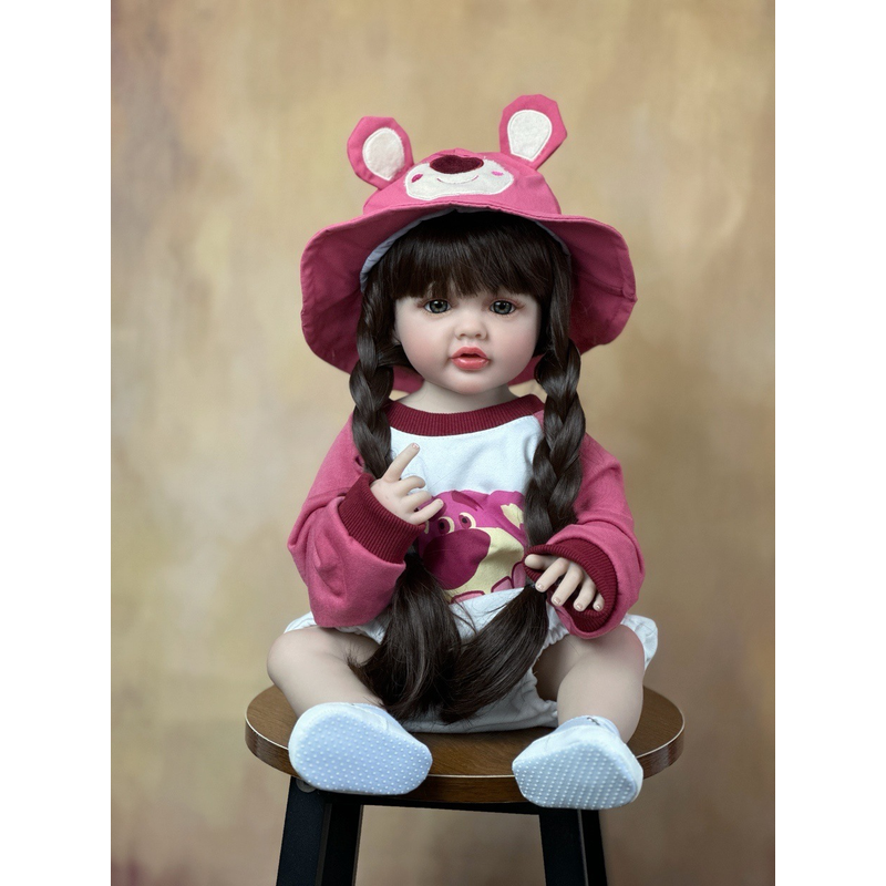 55 cm Lifelike Full Body Silicone Vinyl Girl Washable Reborn Baby Doll With Long Hair Bebe Reborn Children Toys Christmas Gift