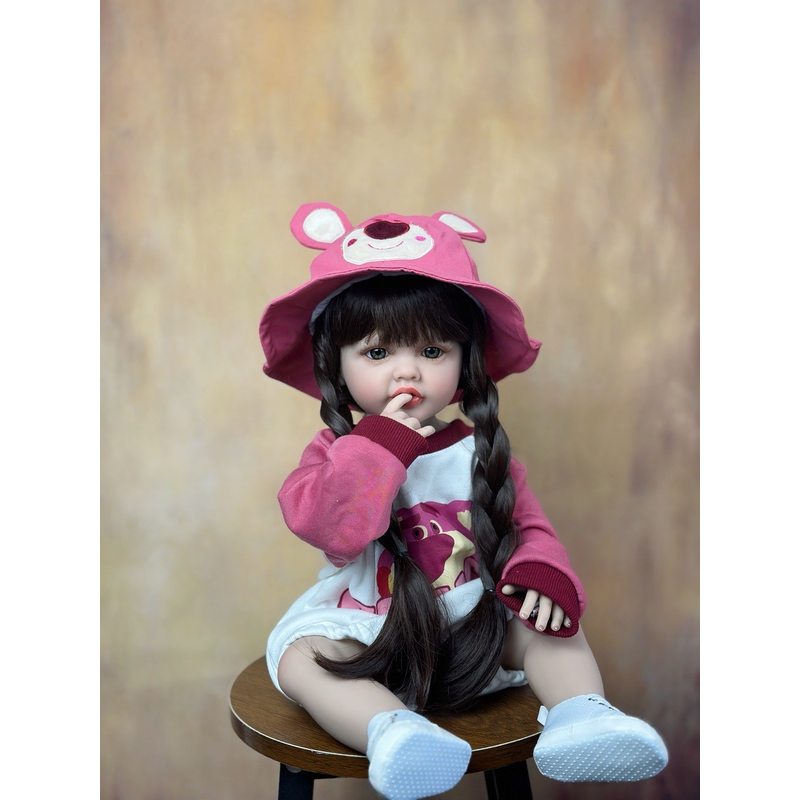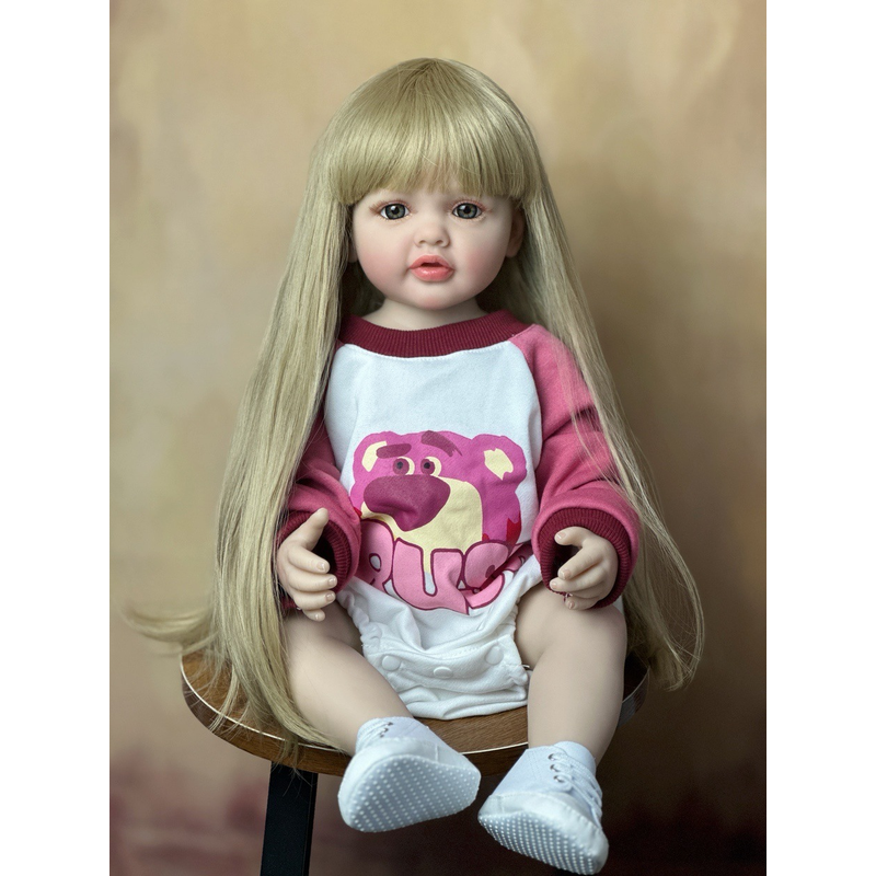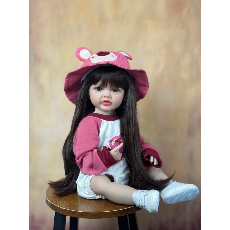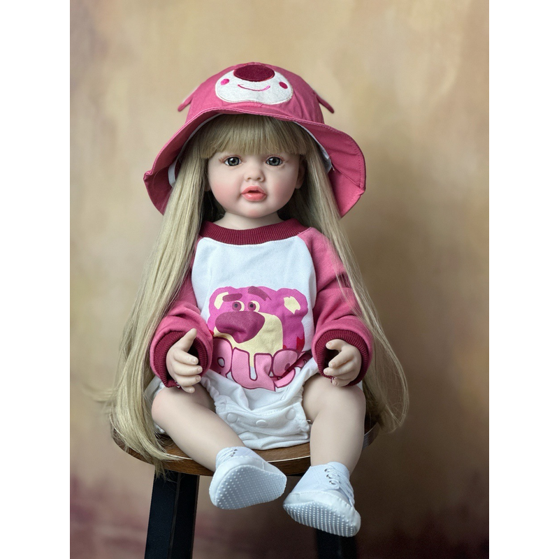 55 cm Lifelike Full Body Silicone Vinyl Girl Washable Reborn Baby Doll With Long Hair Bebe Reborn Children Toys Christmas Gift
