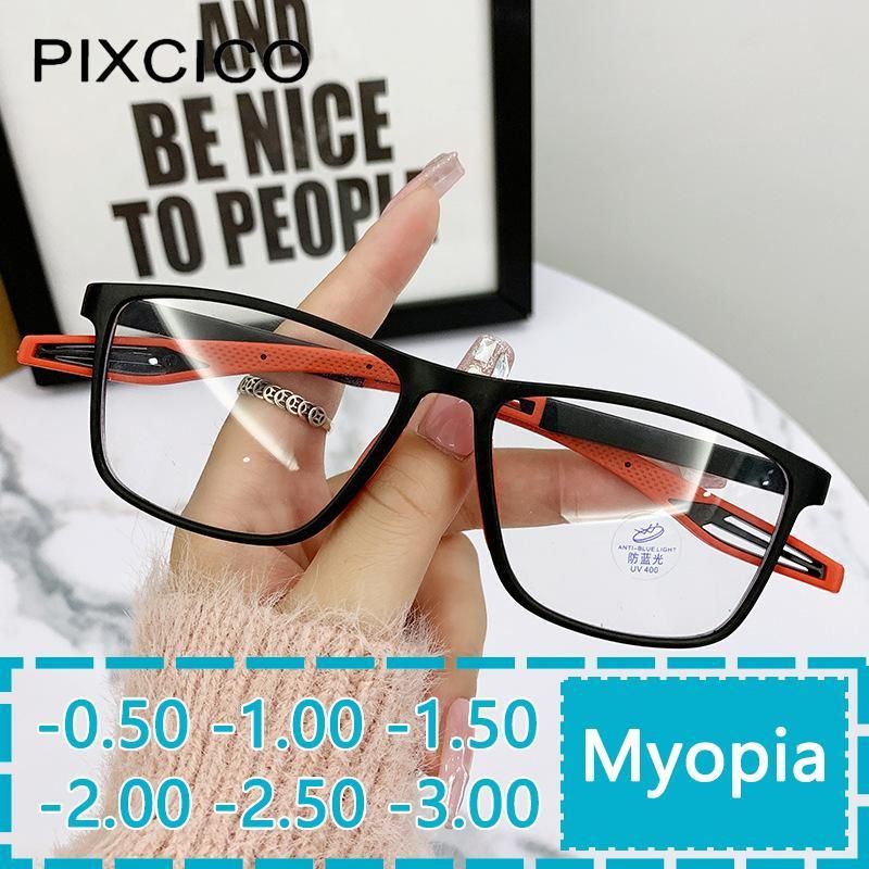 55902 Finished Myopia Glasses Rectangle Retro Sport Presbyopic Eyeglasses Silicone Blocking Blue Light Eyewear -100 -150 -200