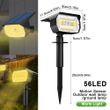 【Extremly Bright Motion Senser Spotlights】: Our solar outdoor spotlights has 56 high-quality LED chips, which can increase brightness and illumination range of solar landscape spotlights. Compared with other solar spotlights, Our products are brighter and have more uniform brightness. Built-in PIR sensor, our solar landscape spotlights have 120° detection angle, which can triggered by human, animals, cars and not by wind, rainwater or frost.