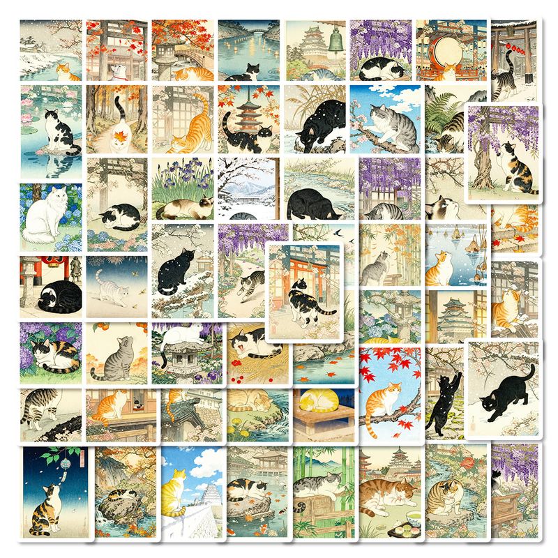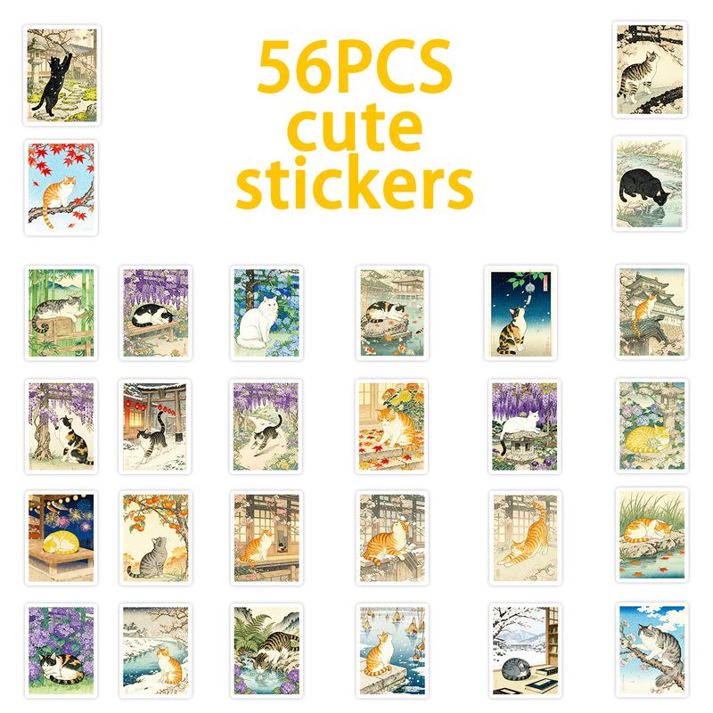 56/112 Pcs Japanese Retro Hand Drawn Cat Theme Stickers for Stationery Box Notebook Phone Laptop Printer Cup No Repeat Decals