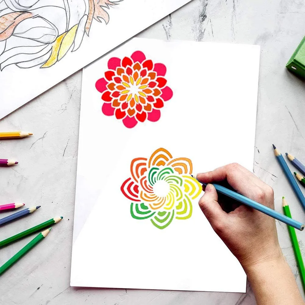 56pcs Hollow Flower & Mandala Design, Art Painting Stencils, -Reusable & Washable PET Plastic Templates for Painting Rocks Wood