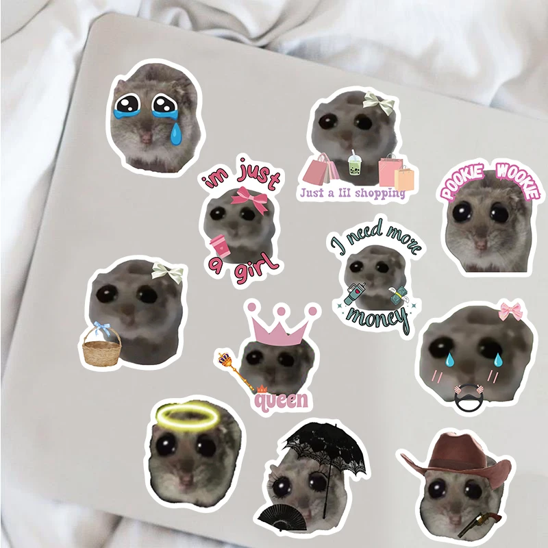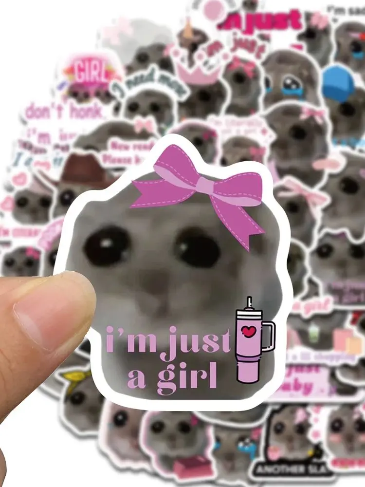 56PCS Sad Hamster Meme Cute Mouse Fun Pattern Sticker Aesthetic Kawaii Decals Cute Cartoon Laptop Luggage Bicycle Diary Stickers