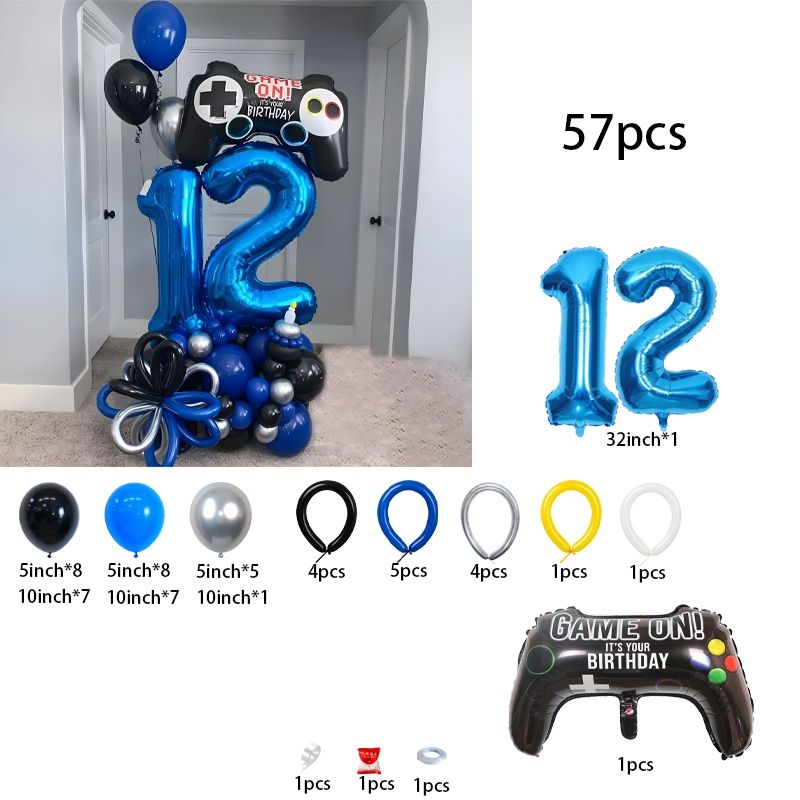 57-Piece Game Controller Balloons – Deep Blue Number Birthday Balloon Set, Gaming-Themed Party Décor, Surprise Gift for Kids’ Bi