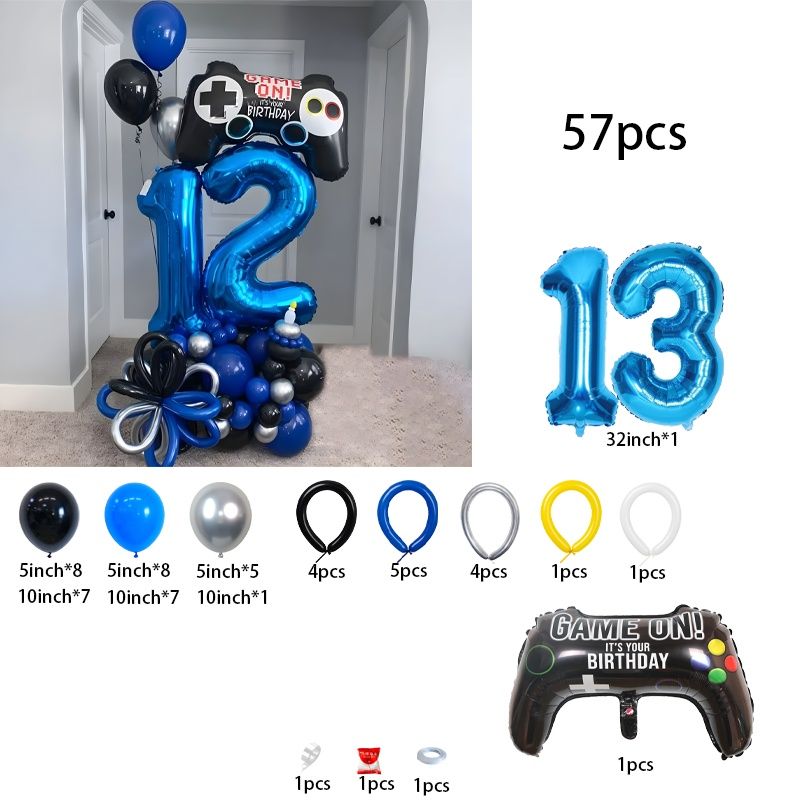 57-Piece Game Controller Balloons – Deep Blue Number Birthday Balloon Set, Gaming-Themed Party Décor, Surprise Gift for Kids’ Bi