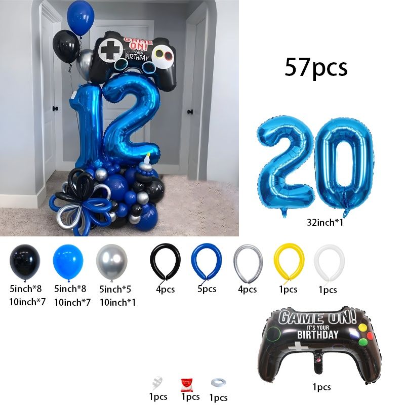 57-Piece Game Controller Balloons – Deep Blue Number Birthday Balloon Set, Gaming-Themed Party Décor, Surprise Gift for Kids’ Bi