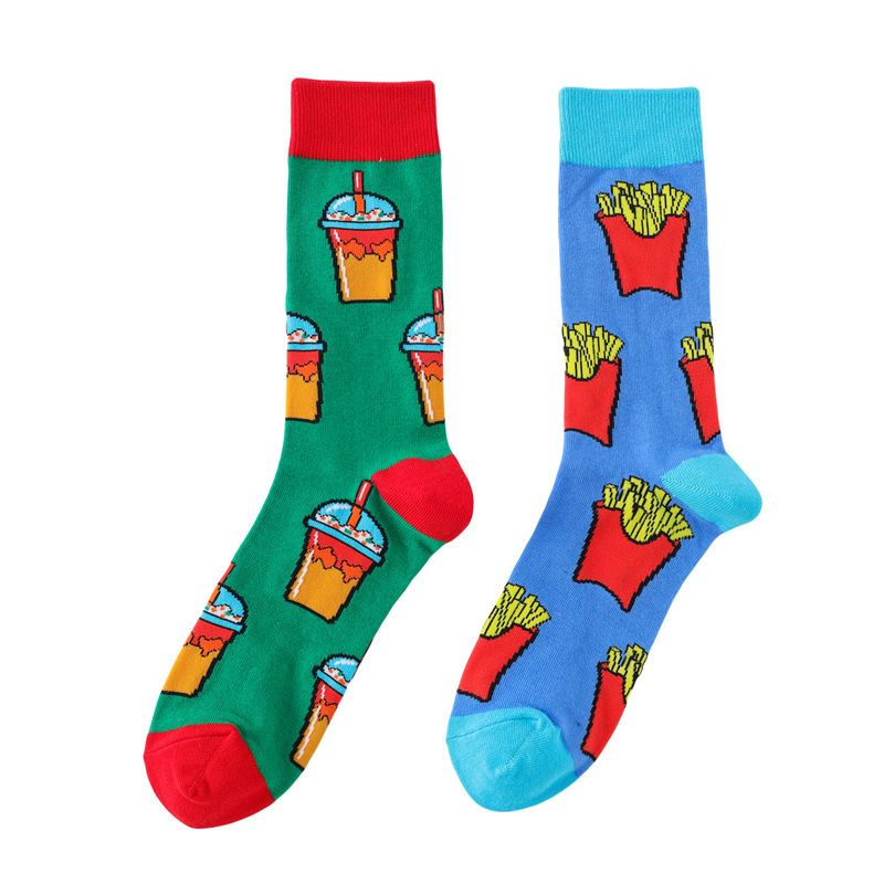 58 Style Food Theme Men Cartoon Socks Cotton Fruit Banana beer coffee bean doughnut sandwich hamburger sushi ice crea Long Socks