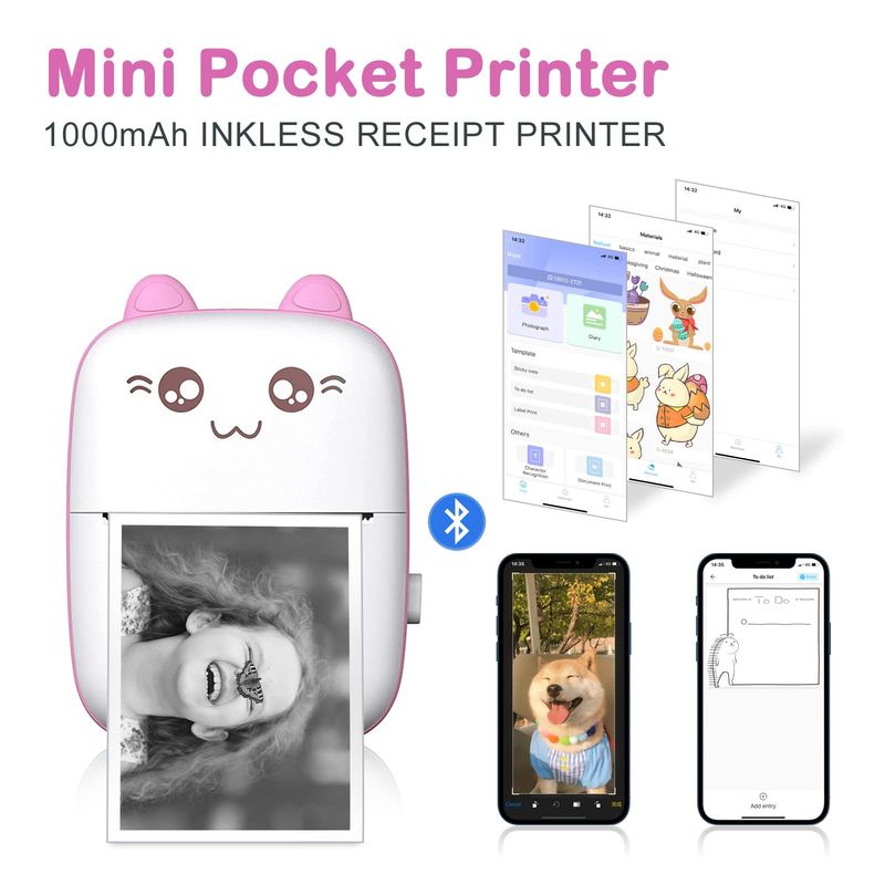 58mm Mini Portable Thermal Printer Cat Shapes Lightweight Wireless Photo Label Memo Wrong Question Printing USB Cable Printer