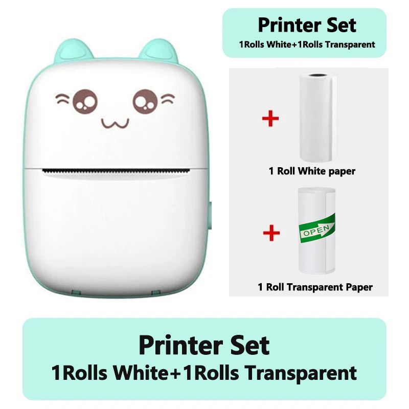 58mm Mini Portable Thermal Printer Cat Shapes Lightweight Wireless Photo Label Memo Wrong Question Printing USB Cable Printer