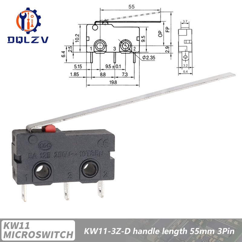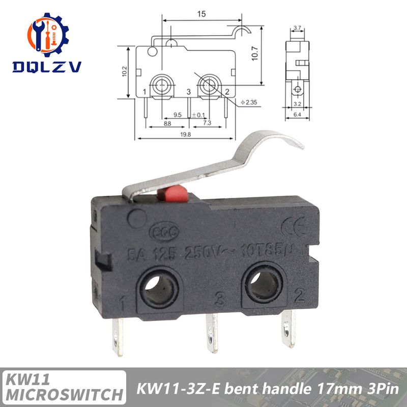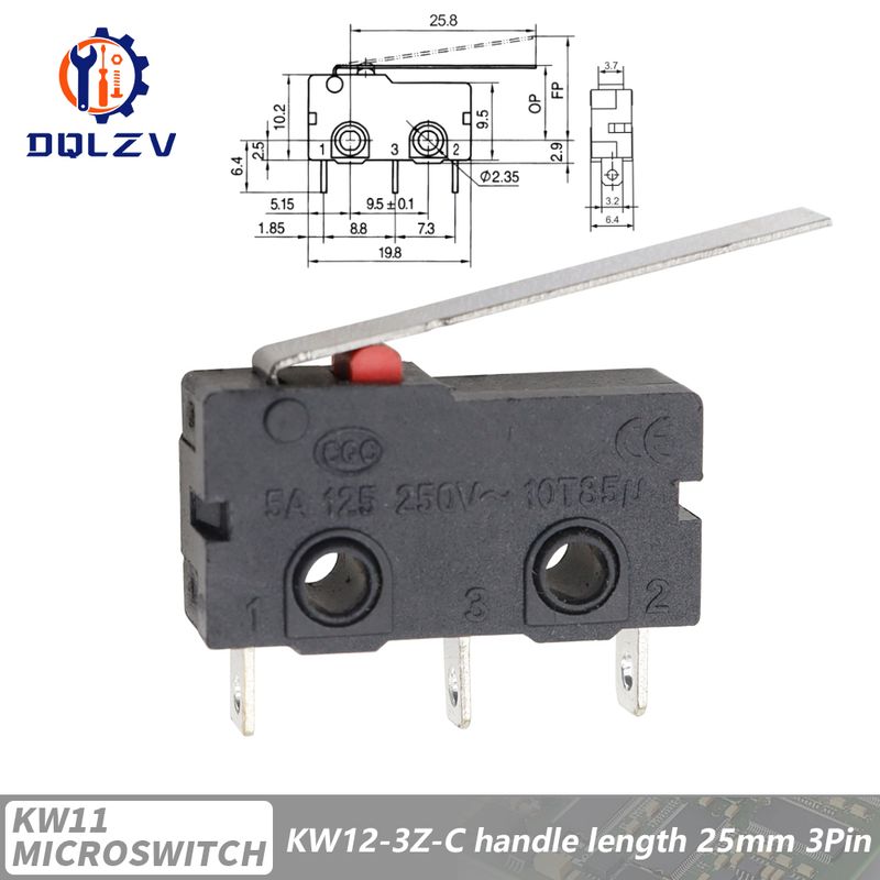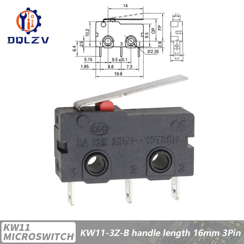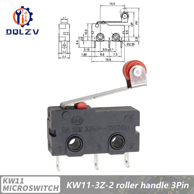 5A 125V250V KW12 Travel Limit Switch KW11-3Z-2 With Handle 16mm Contact Button Micro switch KW12-N 2Pin/3Pin KW12-A NO/NC