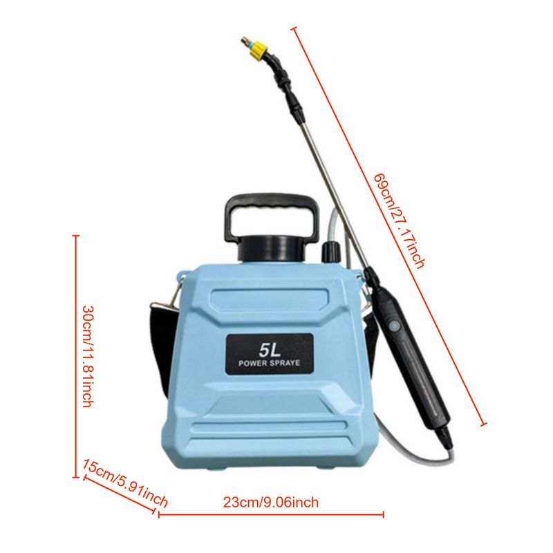 Extendable pole: The electric lawn spray pump features an extendable pole design, extending up to 29.53 inches. The adjustable length facilitates spraying at greater distances.