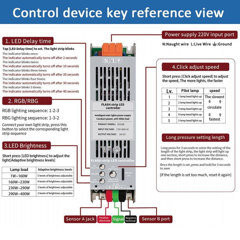 Design: 2 in 1 ( 24V 400W Power Supply + Stair Light Controller integration), installation is more convenient.