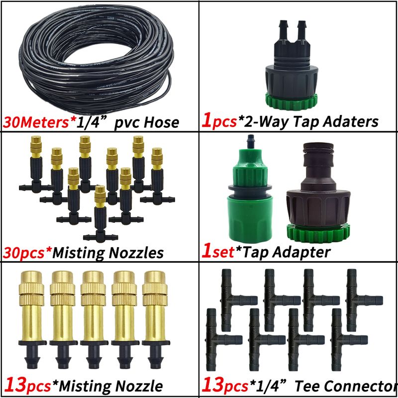 5M-30M Outdoor Misting Cooling System Garden Irrigation Watering 1/4'' Brass Atomizer Nozzles 4/7mm Hose for Patio Greenhouse