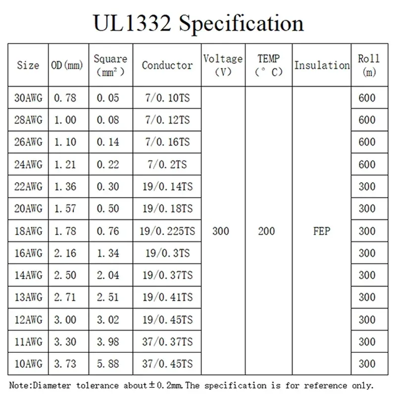 5M/10M UL1332 PTFE Wire 30/28/26/24/22/20/18/16/14/13/12/10 AWG FEP Insulated High Temperature Electron Cable For 3D Printer