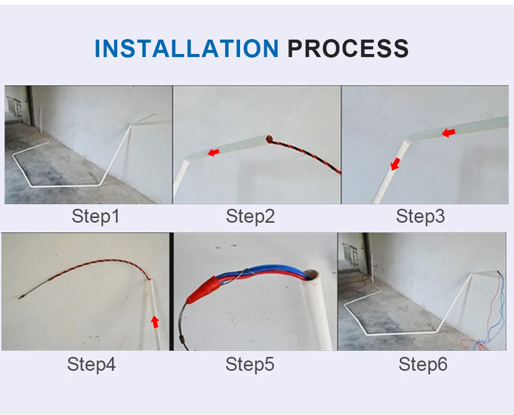 4. Light, strong and smooth steel cable head on both head can pass the crooked pipeline easily.
