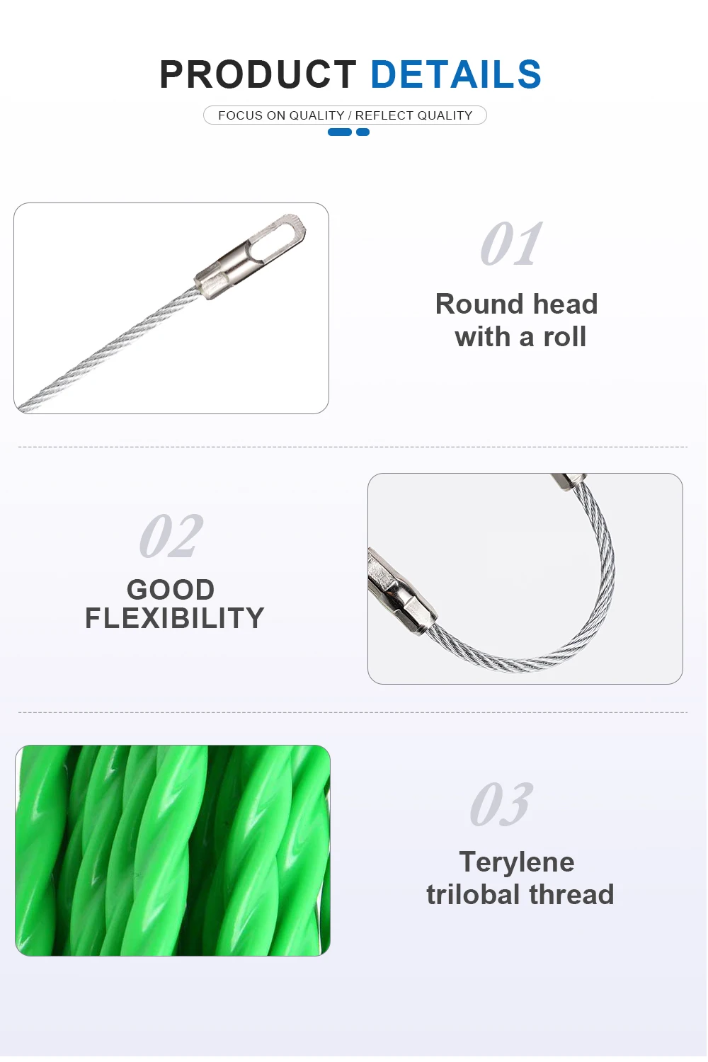 3. High tensile strength durable fish tape jointly have the best elasticity and friction reduction.