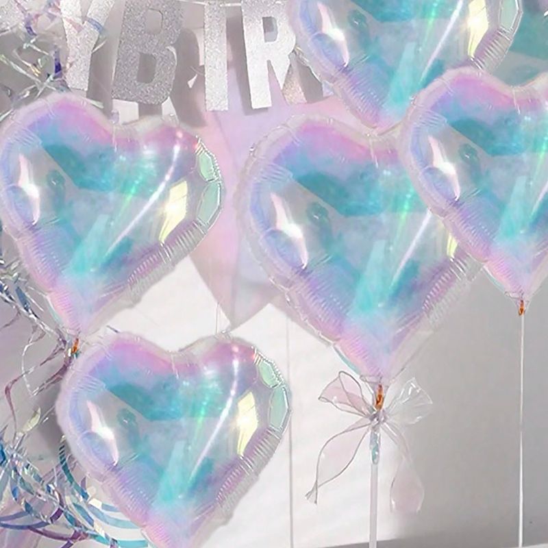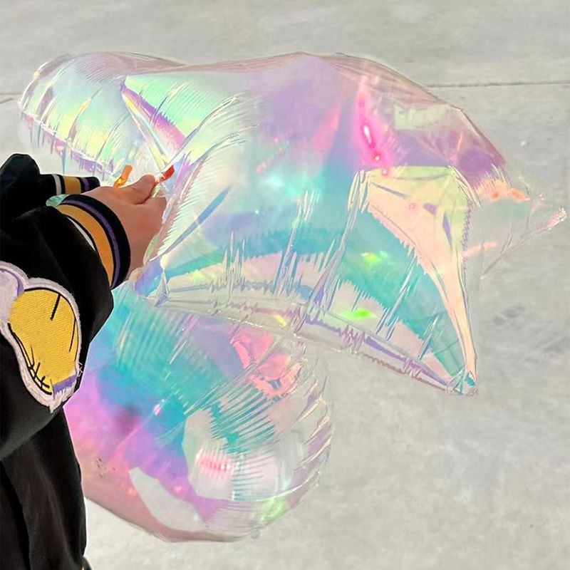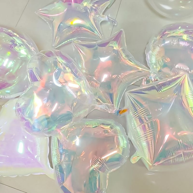 19-inch transparent laser multi-color aluminum foil balloons, holographic love star-shaped round balloons, suitable for birthday parties, wedding engagement theme scene atmosphere decoration supplies (not supported by helium)
