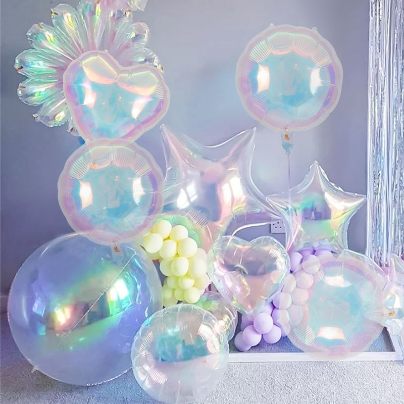 19-inch transparent laser multi-color aluminum foil balloons, holographic love star-shaped round balloons, suitable for birthday parties, wedding engagement theme scene atmosphere decoration supplies (not supported by helium)
