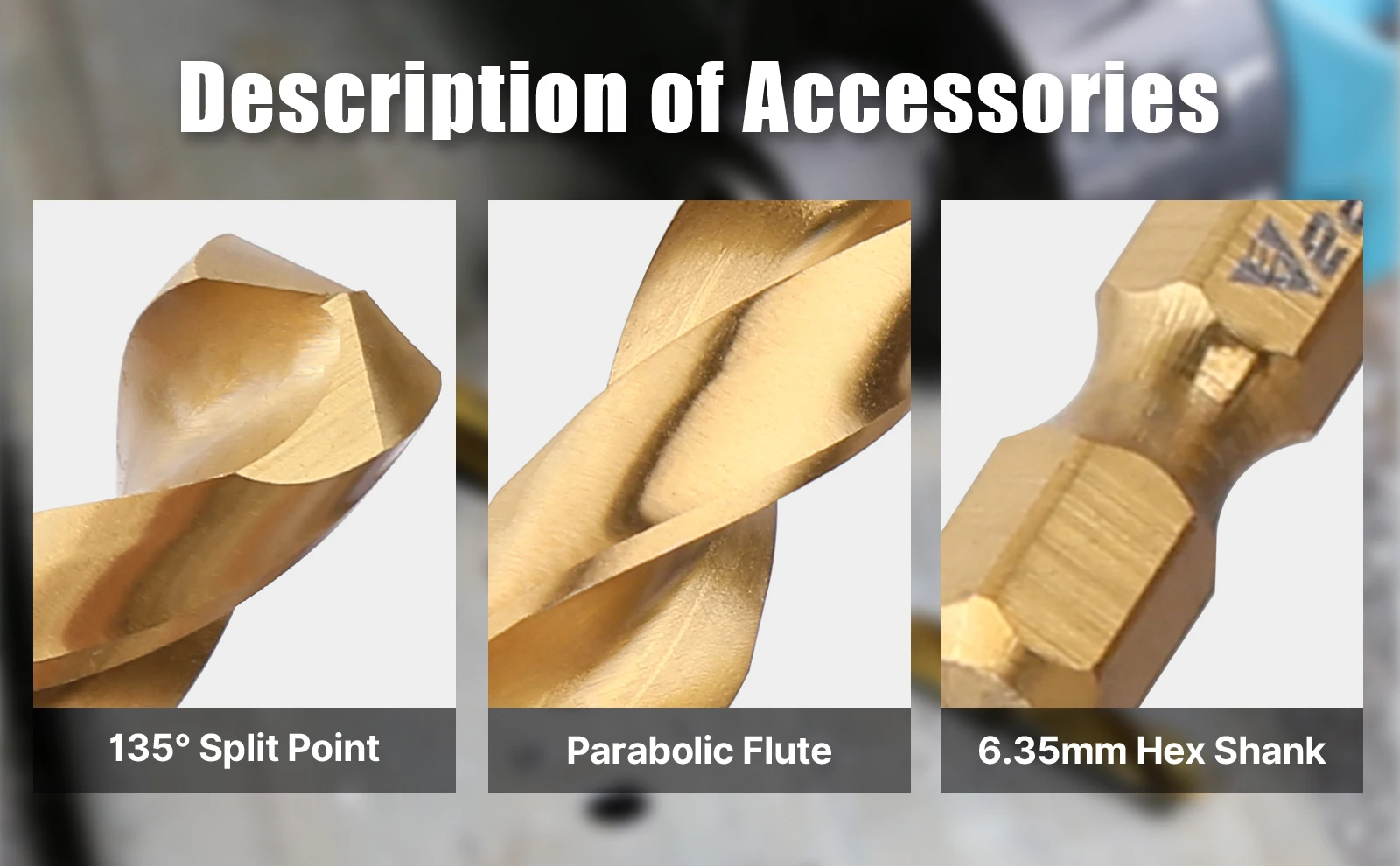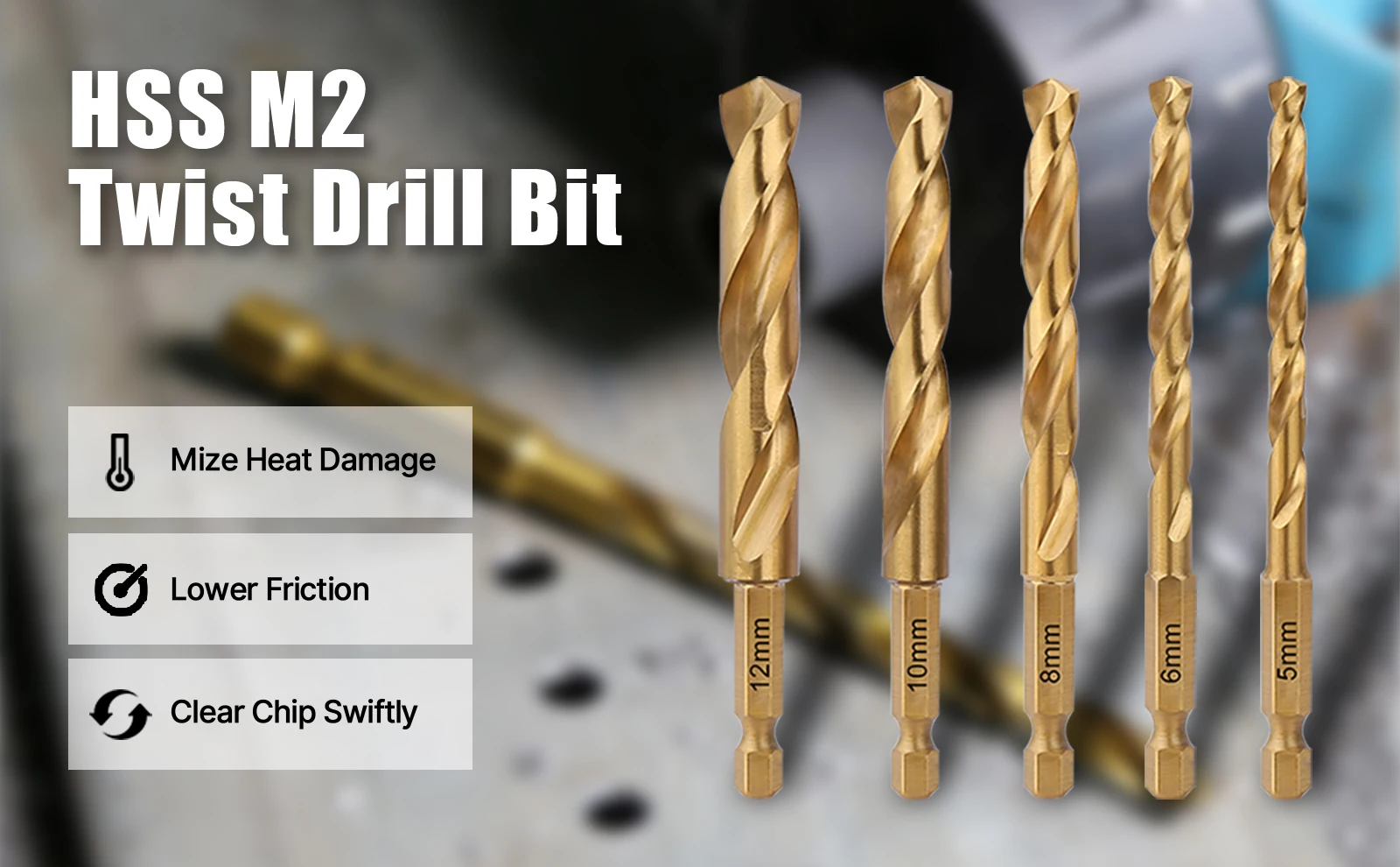 【HSS Titanium Coated】High speed steel (HSS) with Titanium Coated gives Hex drill bits great durability and prolong 3 times longer life than ordinary drill bits without coating.
