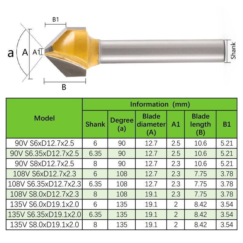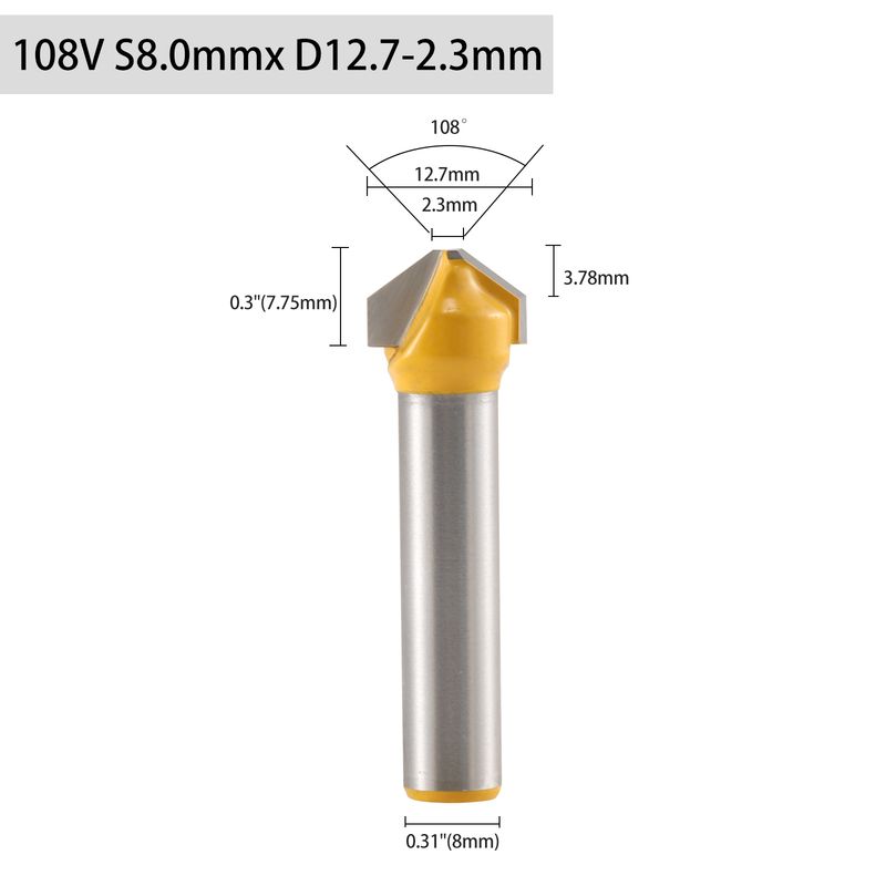 5pcs 6mm 6.35mm 8mm Shank 90 108 135 Degree V-shaped Chamfer Router Bit