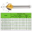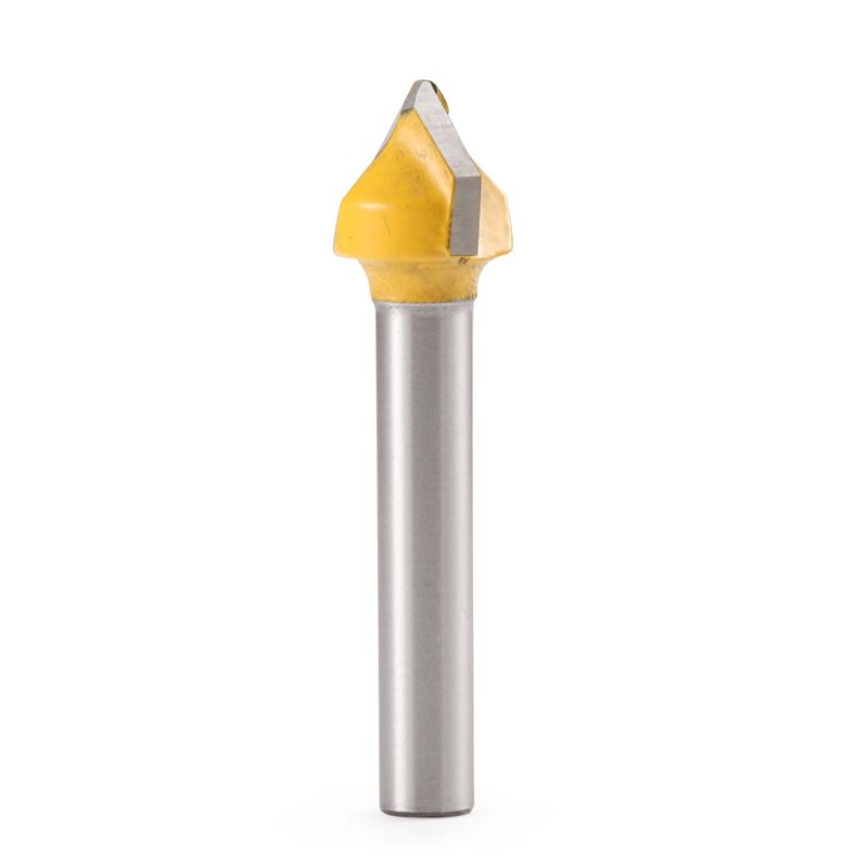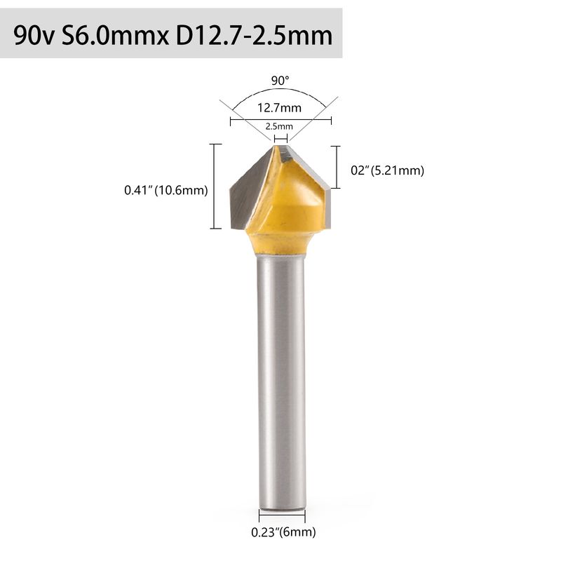 *90 degree V-shaped flat head chamfer, 6mm shank diameter.