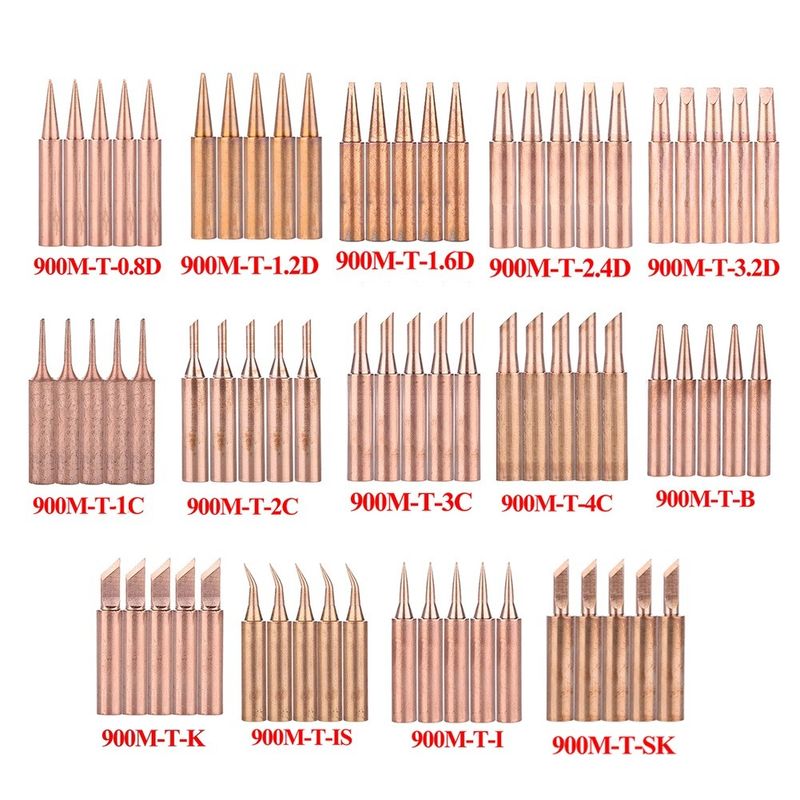 5pcs 900M-T Copper Soldering Iron Tips Lead-Free Welding Solder Tip BGA Soldering Tools Branding Iron933.907.951