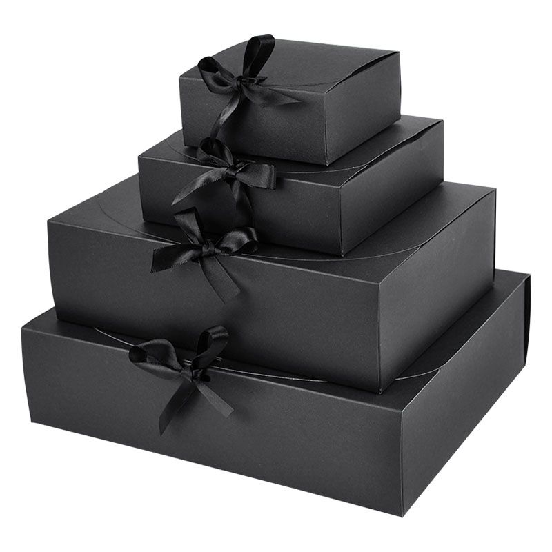 5Pcs Black Kraft Paper Gift Box With Bow Ribbon Large Size Packaging Box For Birthday Wedding Party Gift Boxes Decor Supplies