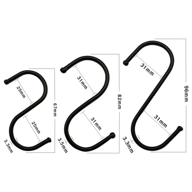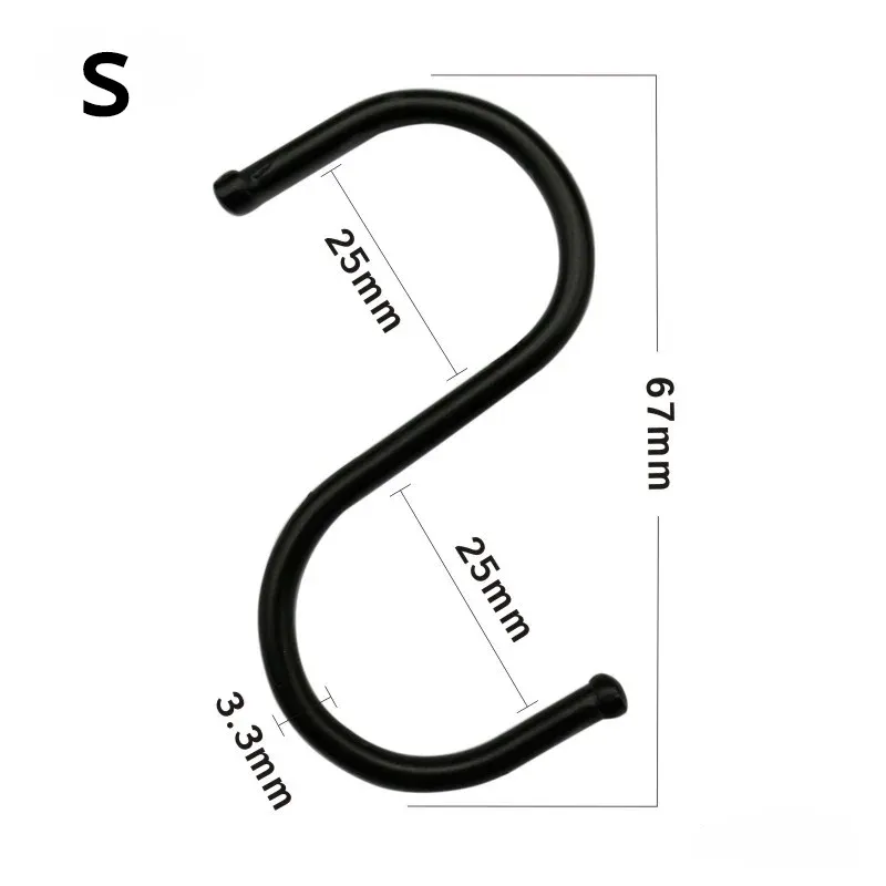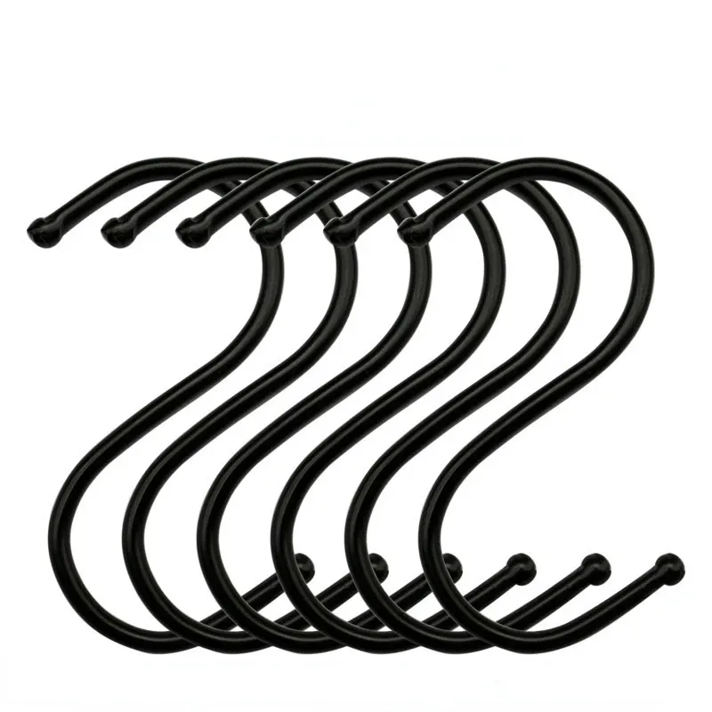 5Pcs Black S Shape Hook Kitchen Pan Hanging Holder Garden Bathroom Towel Bags Clothes S Hooks Home Storage Tools Railing Hanger