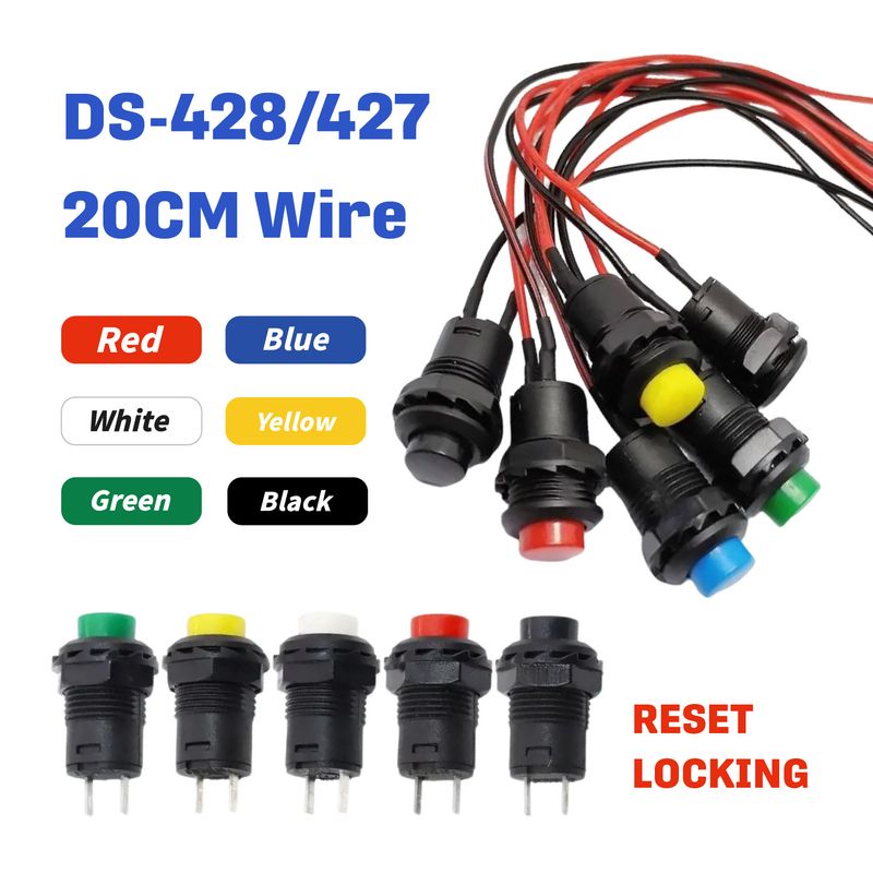 5PCS DS-427 DS-428 Momentary Minitype Push Button Switch 6 Colors Self-locking Self-reset 20cm Wire