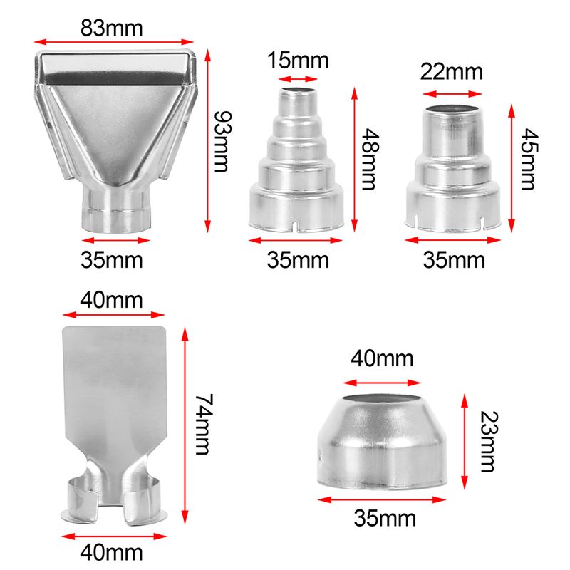 3. Five Sizes: 5 different sizes of hot air gun nozzles, suitable for different purposes, you can choose according to your needs.