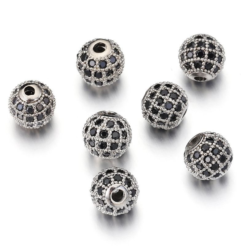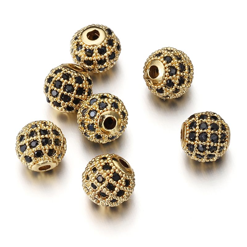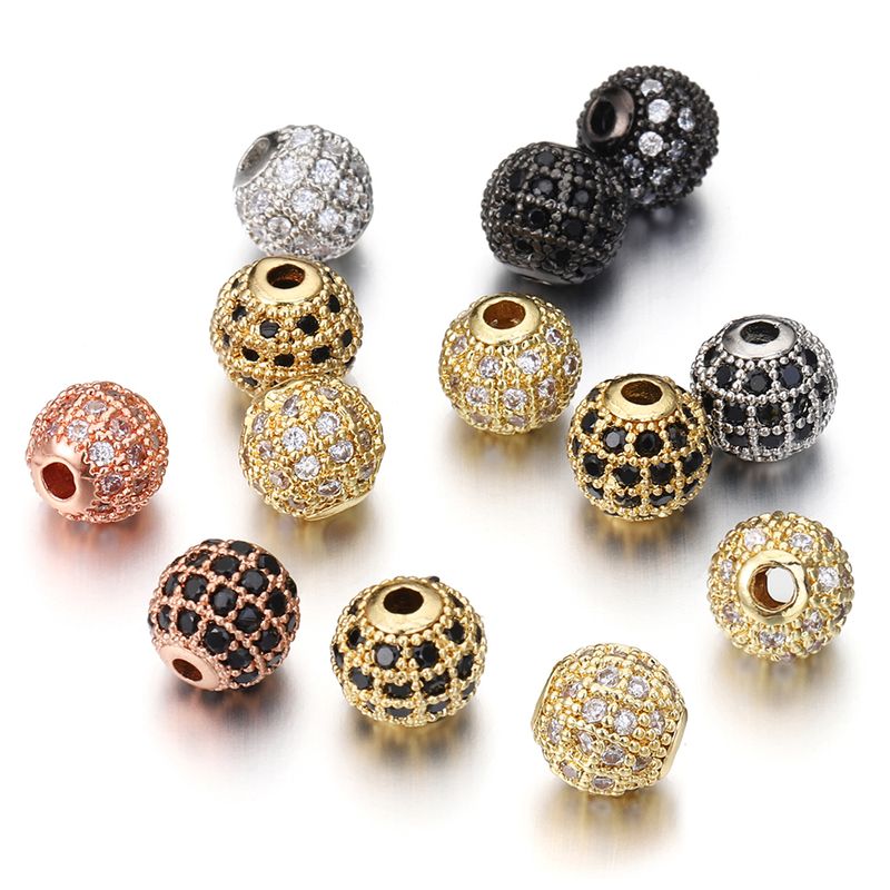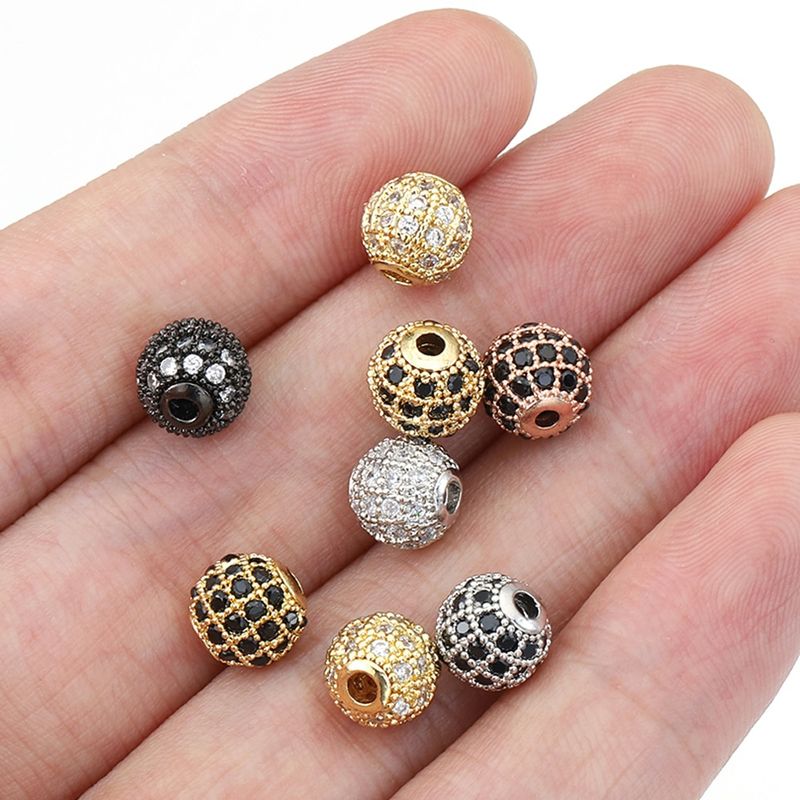 5pcs Metal Brass Micro Pave Cubic Zirconia Round Spacer Loose Beads for DIY Charms Necklace Bracelet Jewelry Making Accessories